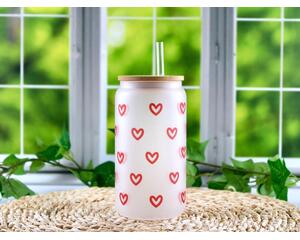 Heart 16oz Glass Can with Bamboo Lid and Straw