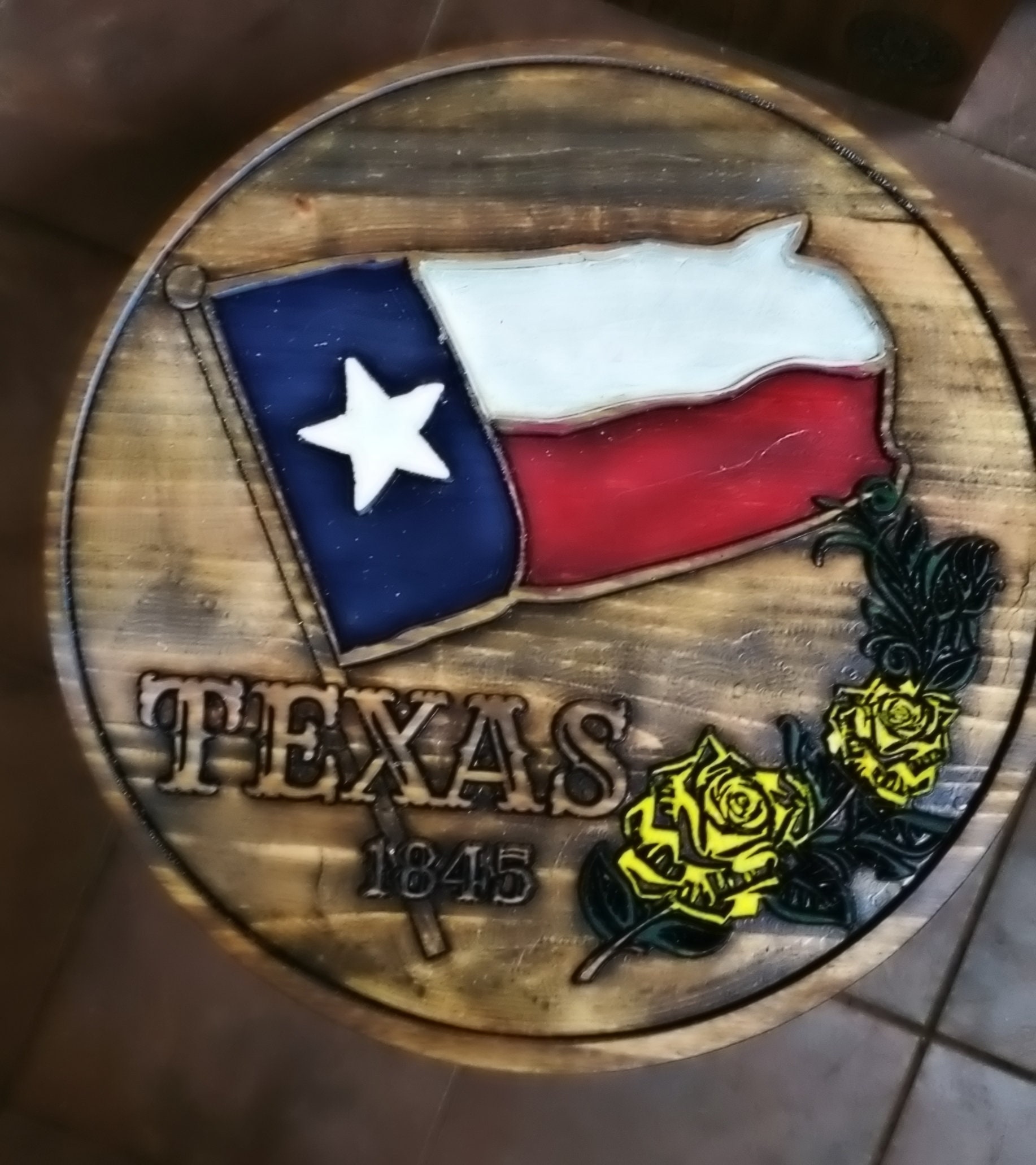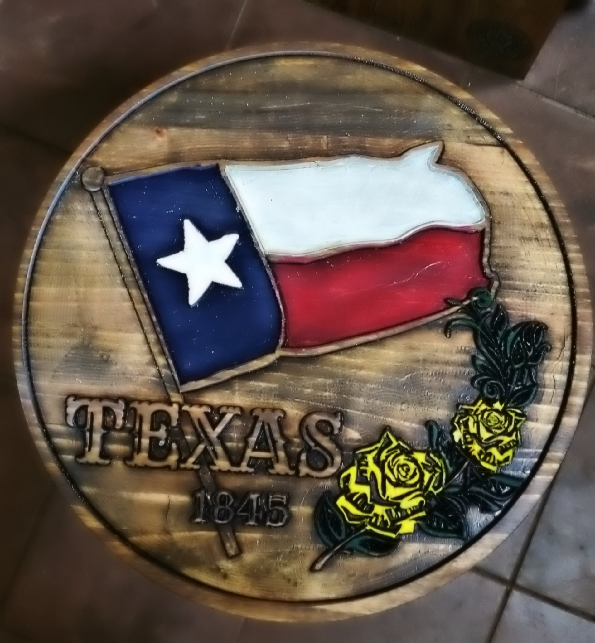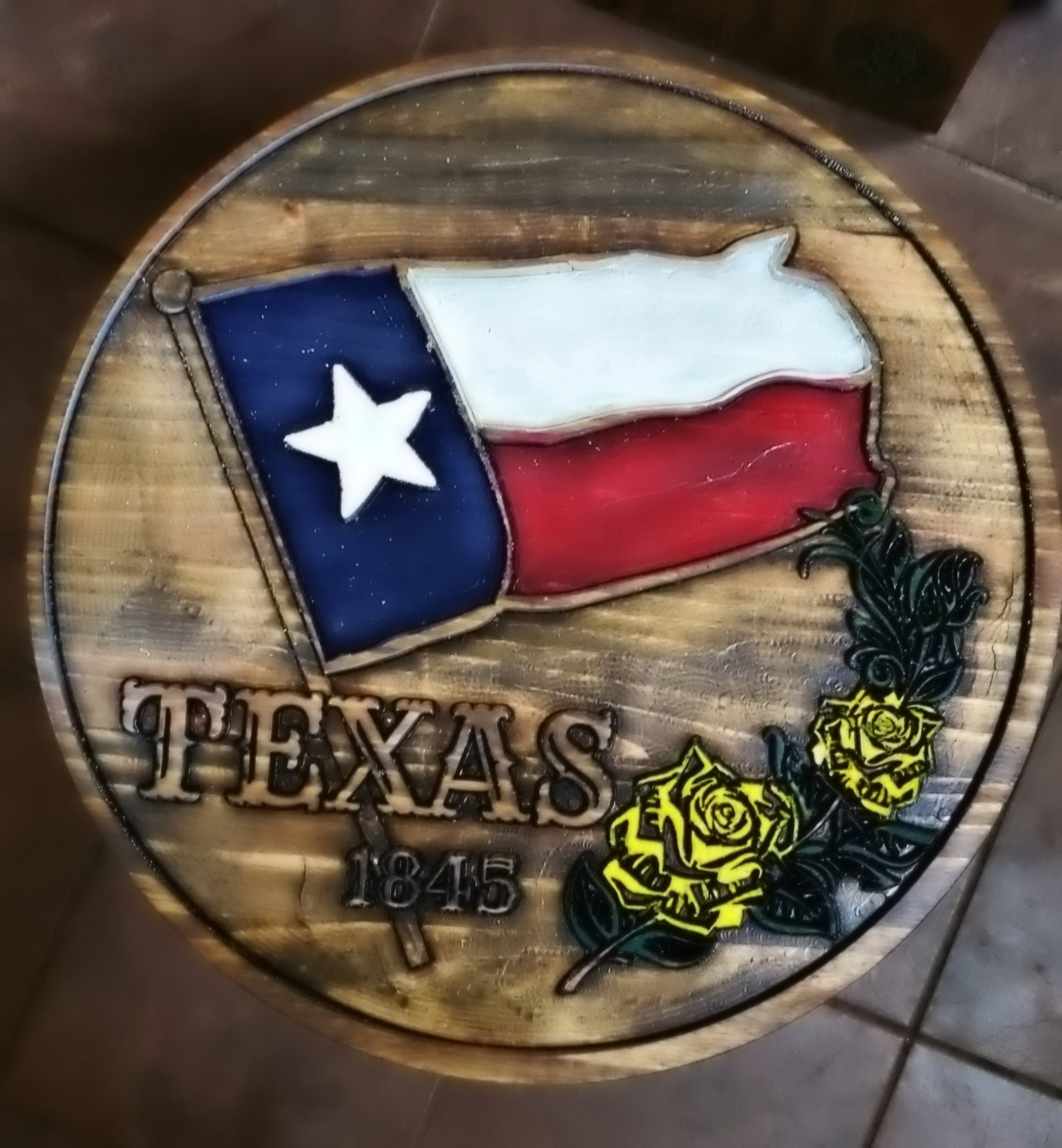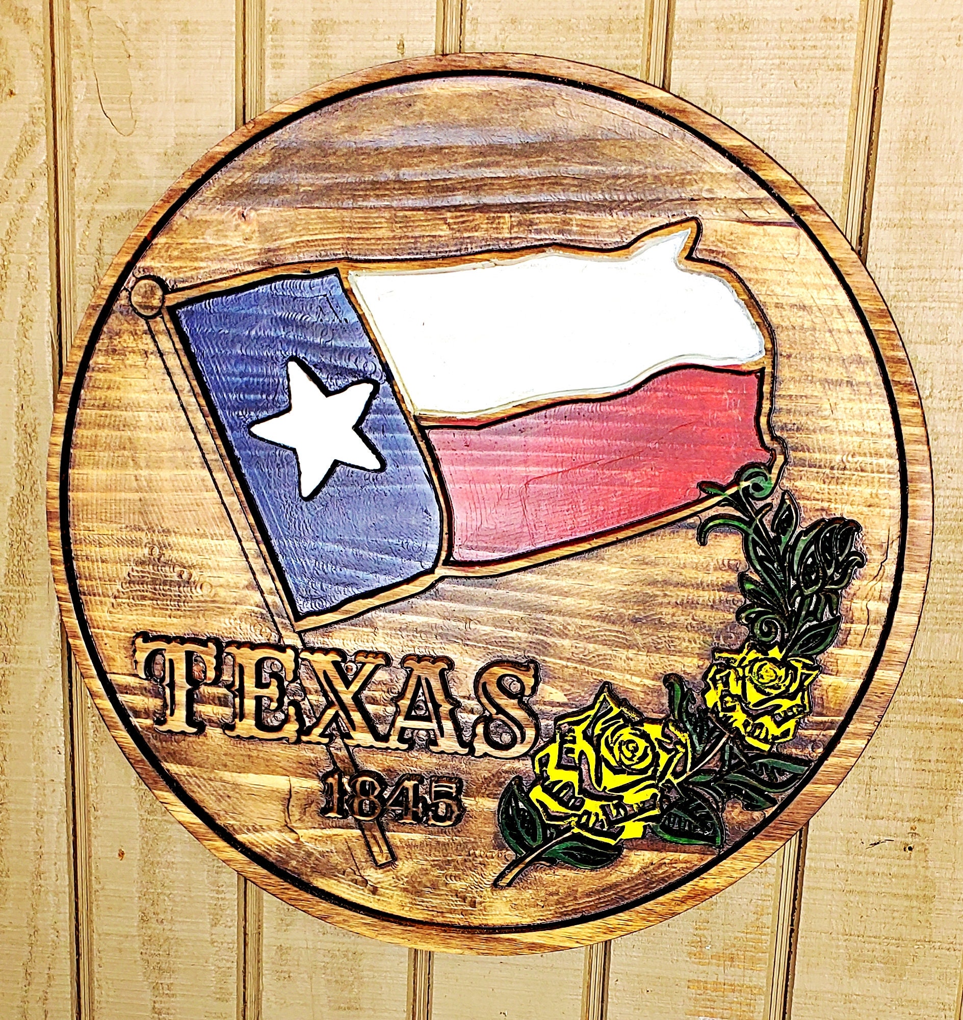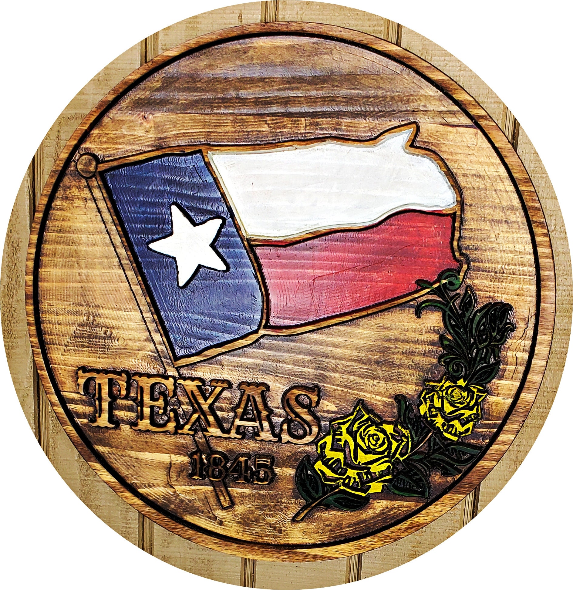 CHRISTMAS GIFTS Gift for Dad Personal Gift, Texas Art, Texas Flag, The yellow roseof Texas. A Precision detailed Artwork that will enhance any Den or Office. Naturally beautiful, highly detailed. 18" x 18"" solid wood carving. A true conversation piece. Excellent gift for any Texas attorney or Texas Patriot. Front door sign, Door decoration
