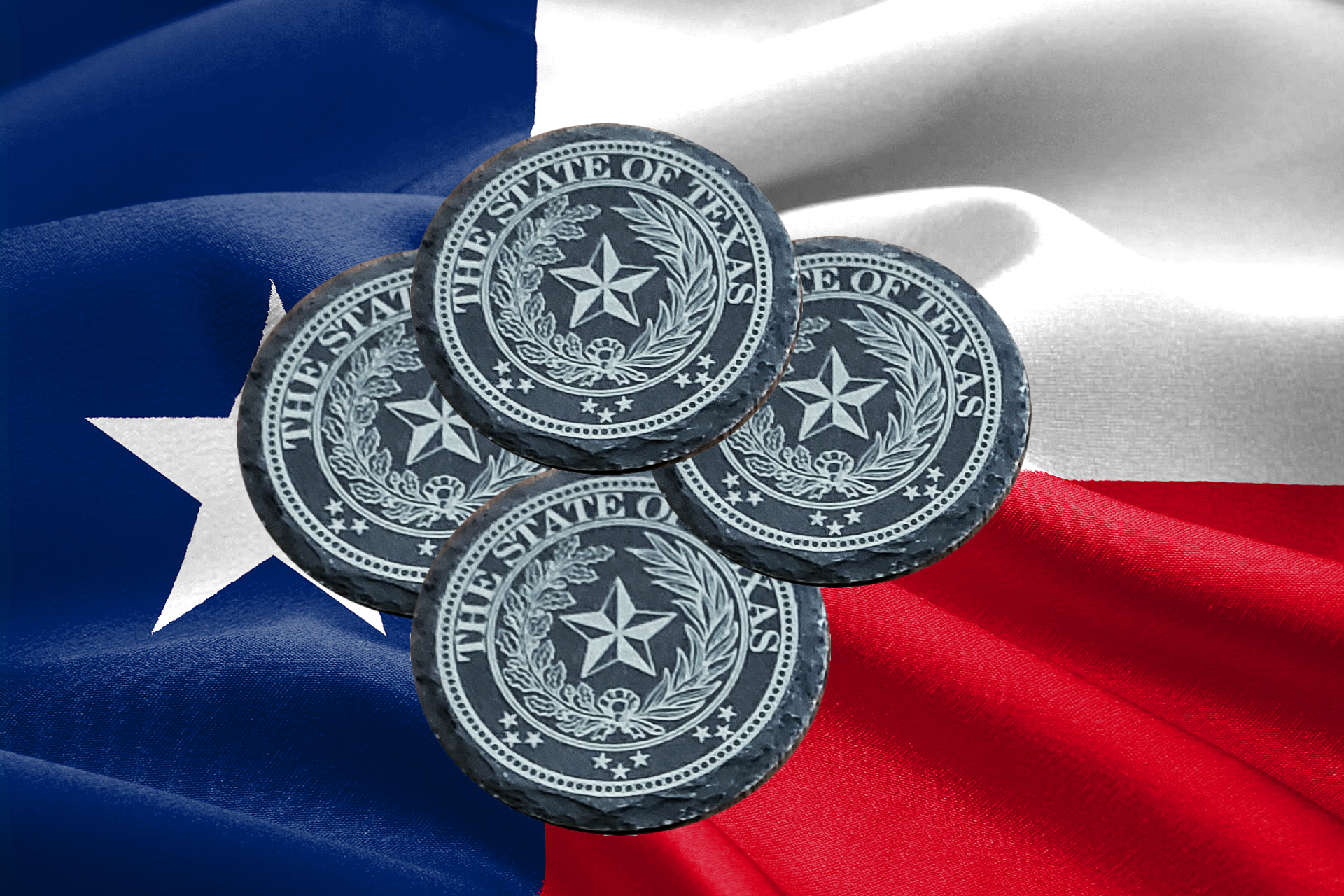 CHRISTMAS GIFTS Slate Stone 4" coasters laser engraved with the Texas State Seal. Texas State Seal is precision cut into these very unique items. Great for Christmas , Birthdays , house warmings. Display your Texas heritage while protecting your furniture. Set of 4.