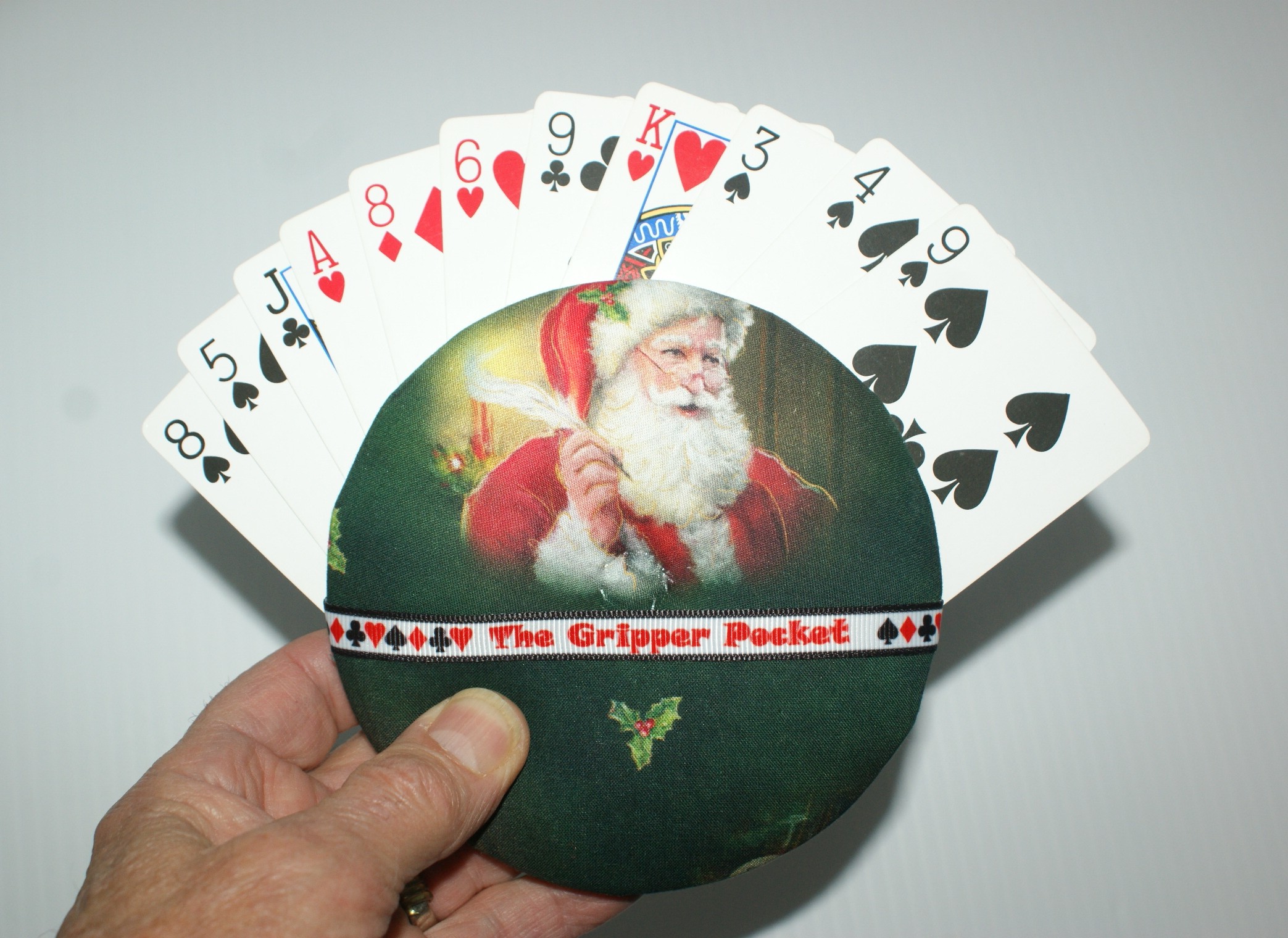 But while we were there I discovered that many retirees loved to play card games. However, I also learned that there were many who had problems holding the cards due to hand issues, way too many cards, etc. So I decided to set out to find a solution. After many trials and errors, I came up with a prototype which, after consulting with my wife (who has done quite a bit of sewing and quilting) I improved upon and set out to test my "invention" at craft fairs. To my surprise, they went over so well that I actually sold out at my first one! I quickly made more that evening and participated in another craft fair where I just about sold out again.