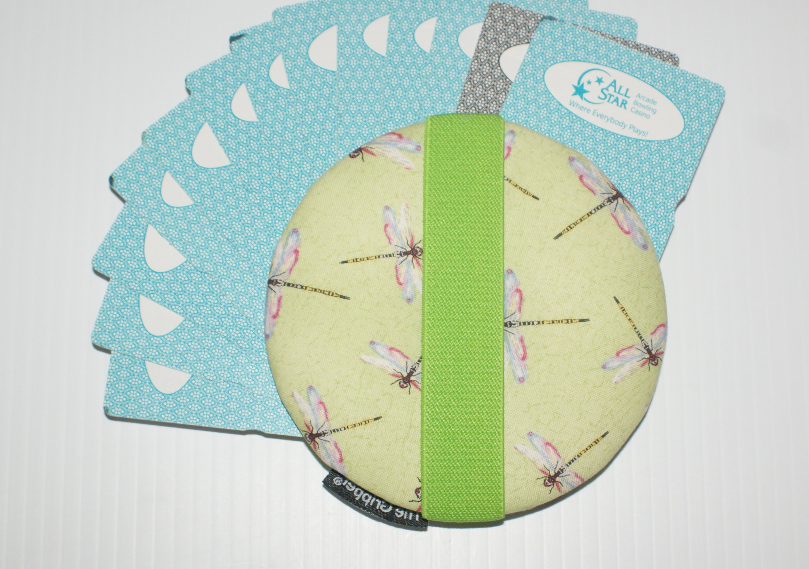 The Hand-Aid playing card holder is a circular card holder with a nice padded feel. I designed it specifically for those with Parkinson’s, arthritis and/or other hand issues. Incorporating an elastic strap on the back, it enables people who have hand issues to play their favorite card games again! With the elastic strap, the card player doesn’t actually “HOLD” the card hand; the Hand-Aid holds the cards and ITSELF to your hand!