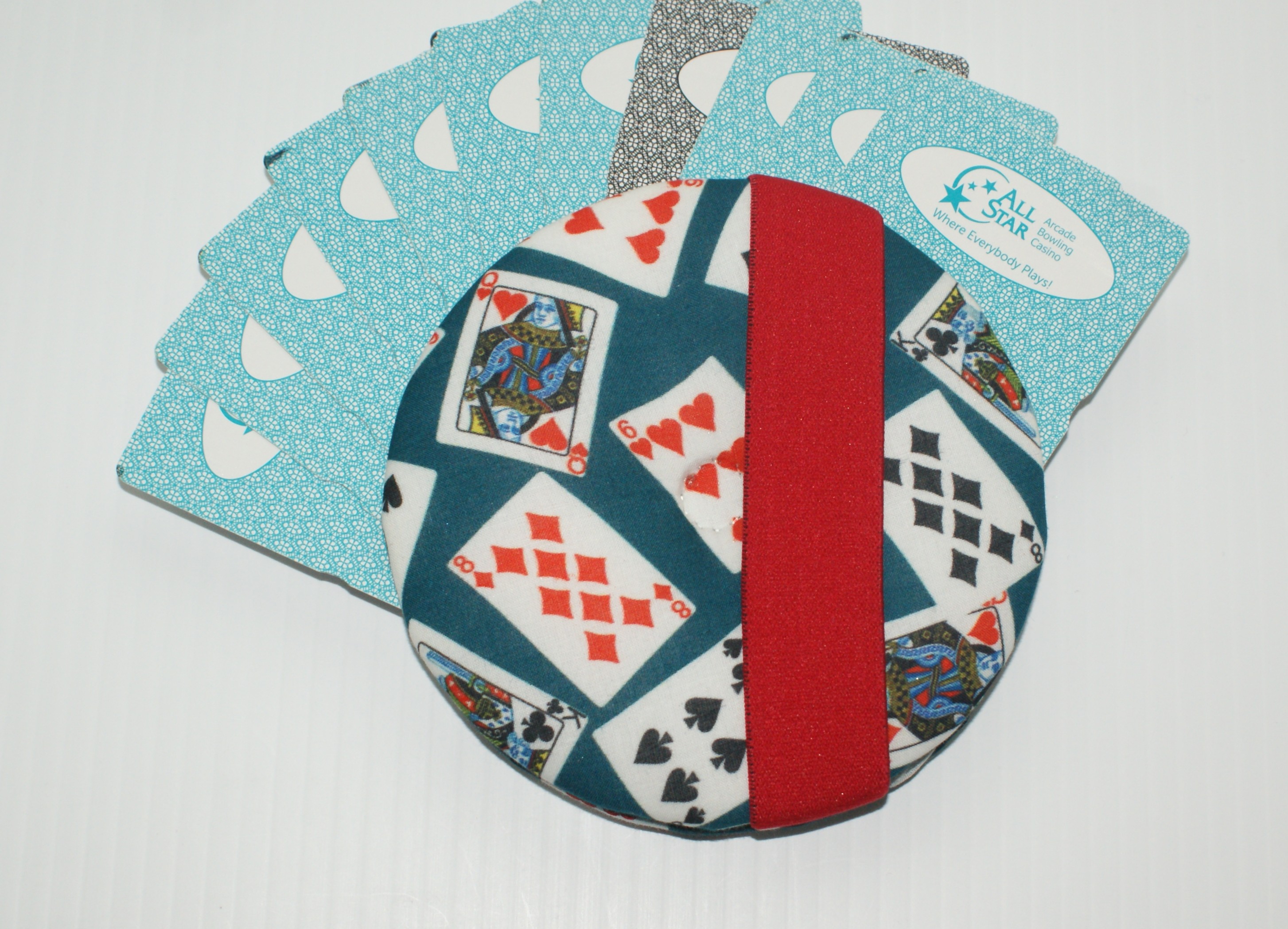 But while we were there I discovered that many retirees loved to play card games. However, I also learned that there were many who had problems holding the cards due to hand issues, way too many cards, etc. So I decided to set out to find a solution. After many trials and errors, I came up with a prototype which, after consulting with my wife (who has done quite a bit of sewing and quilting) I improved upon and set out to test my "invention" at craft fairs. To my surprise, they went over so well that I actually sold out at my first one! I quickly made more that evening and participated in another craft fair where I just about sold out again.
