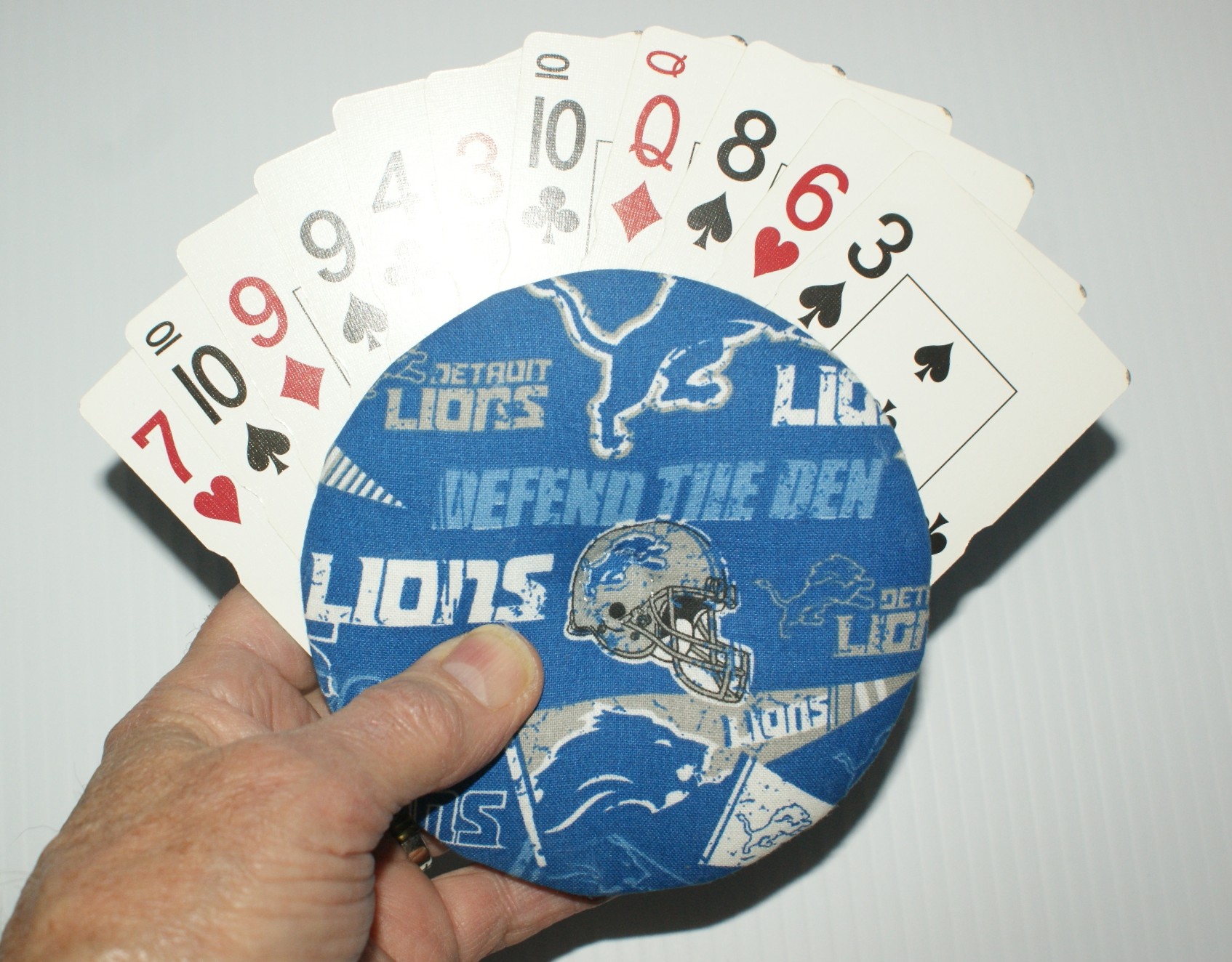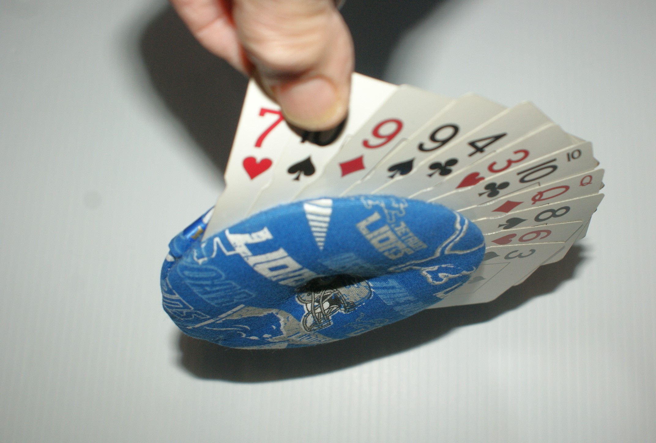 But while we were there I discovered that many retirees loved to play card games. However, I also learned that there were many who had problems holding the cards due to hand issues, way too many cards, etc. So I decided to set out to find a solution. After many trials and errors, I came up with a prototype which, after consulting with my wife (who has done quite a bit of sewing and quilting) I improved upon and set out to test my "invention" at craft fairs. To my surprise, they went over so well that I actually sold out at my first one! I quickly made more that evening and participated in another craft fair where I just about sold out again.
