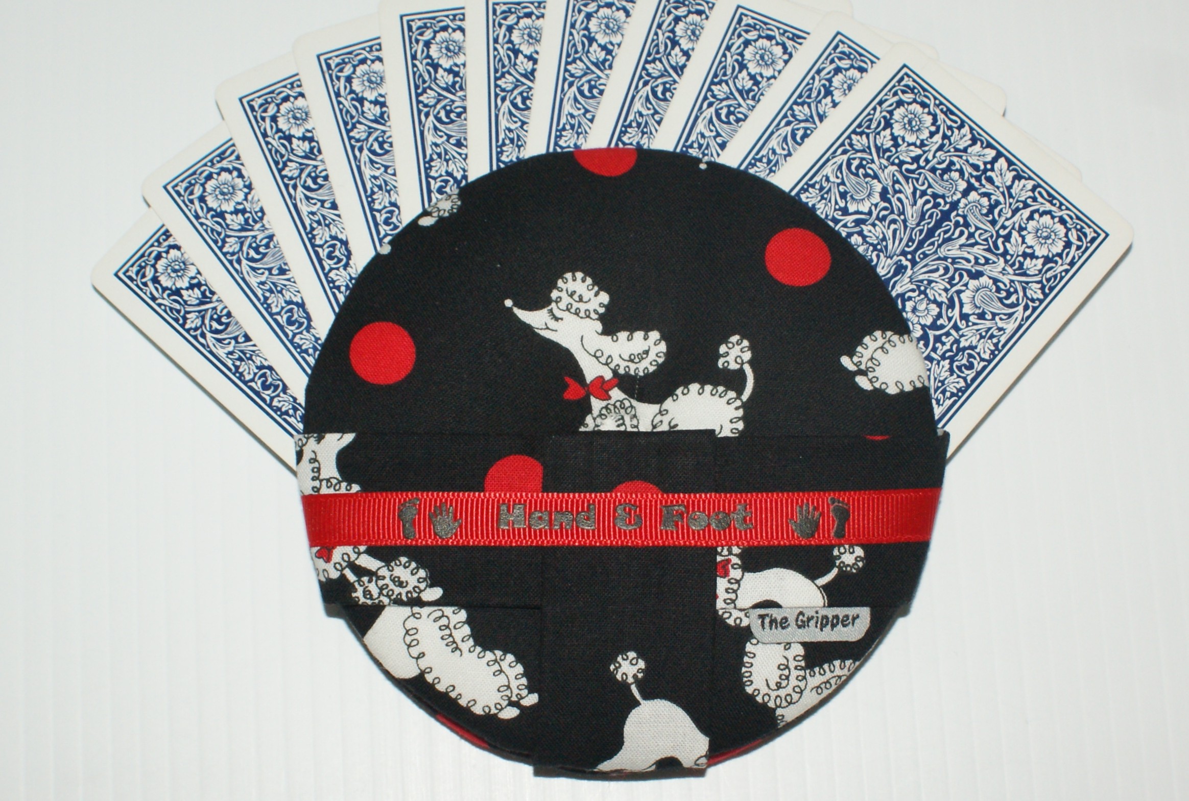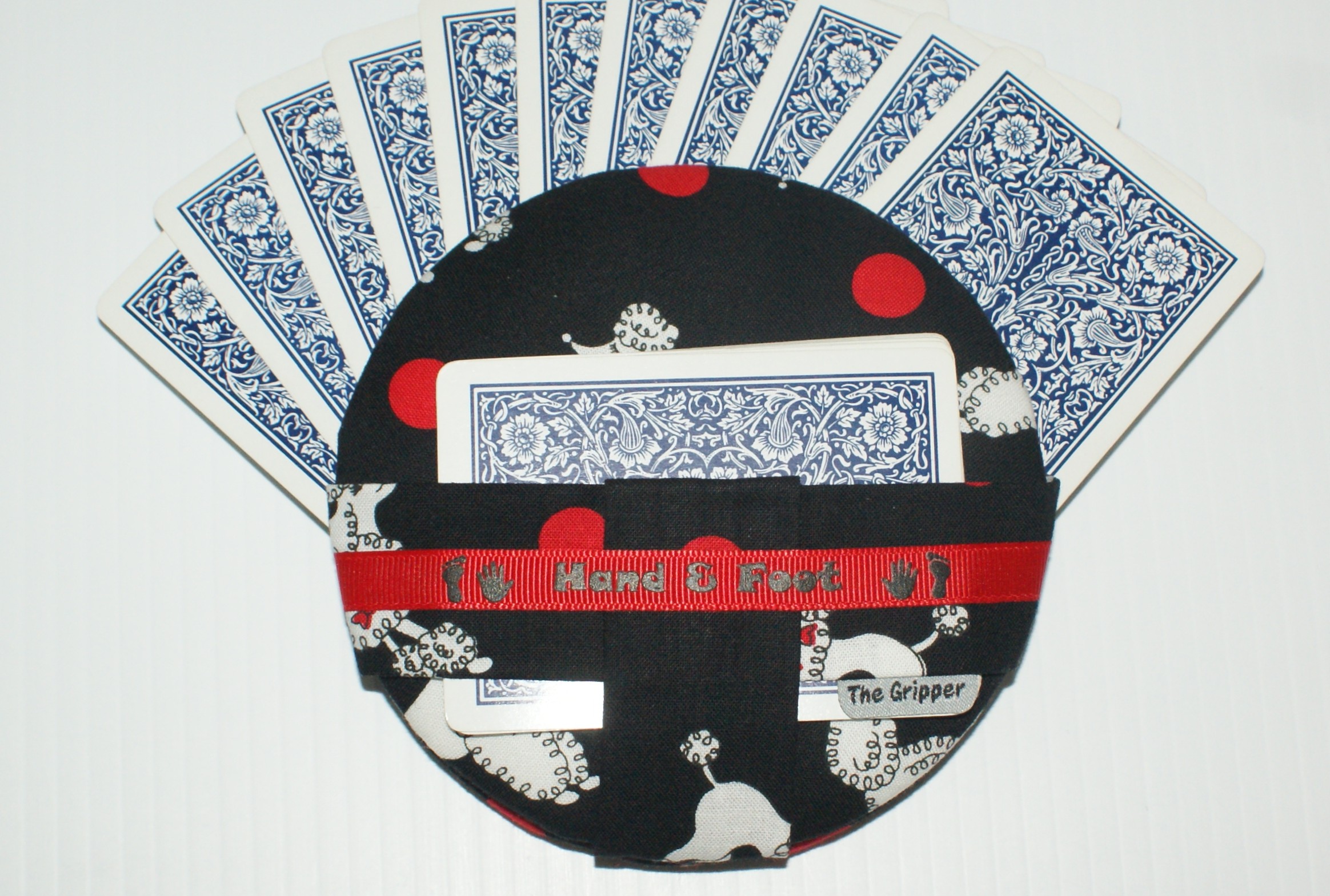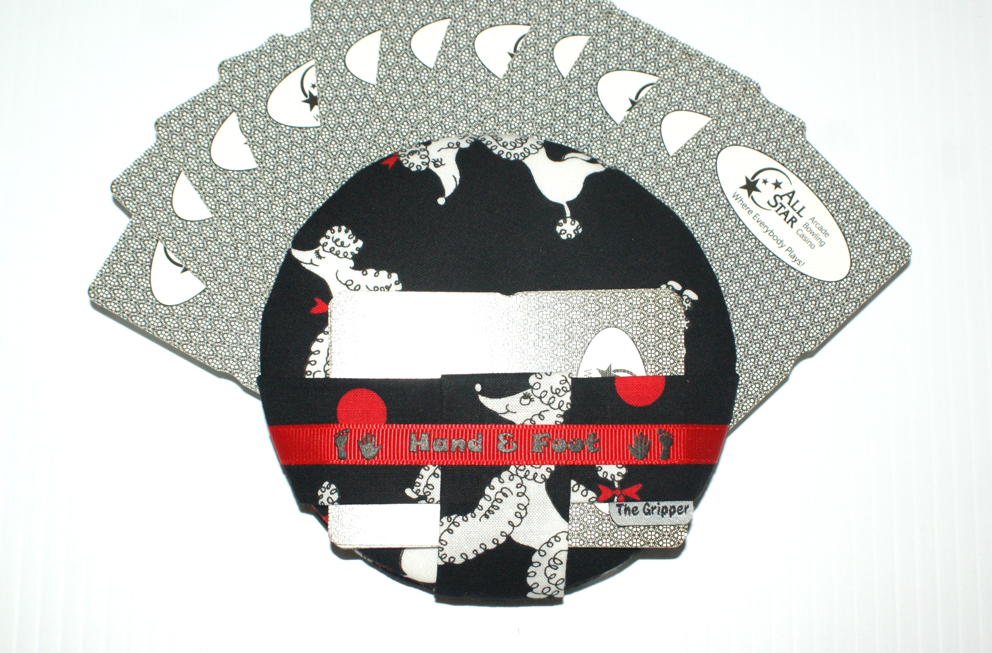 Made with quality materials, and now with my new, exclusive Hand and Foot ribbons, I create my Grippers in a little shop located in my backyard. I do it all: buy all the materials needed, prepare everything to be made into one of my unique playing card holders, package and ship them, and do all the advertising needed. This is actually a hobby of mine as I'm retired, so I try to keep things down so as not to turn it into a job!