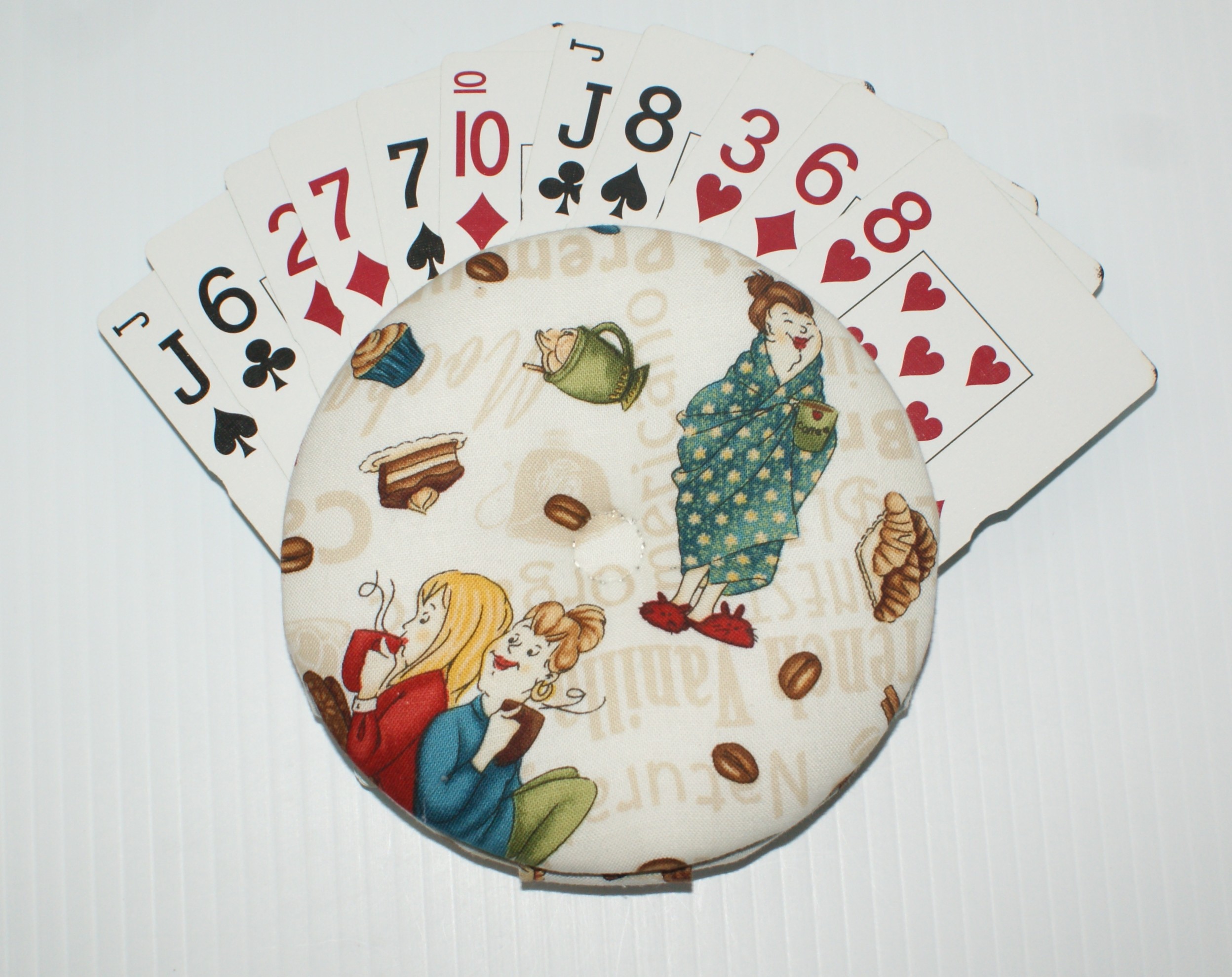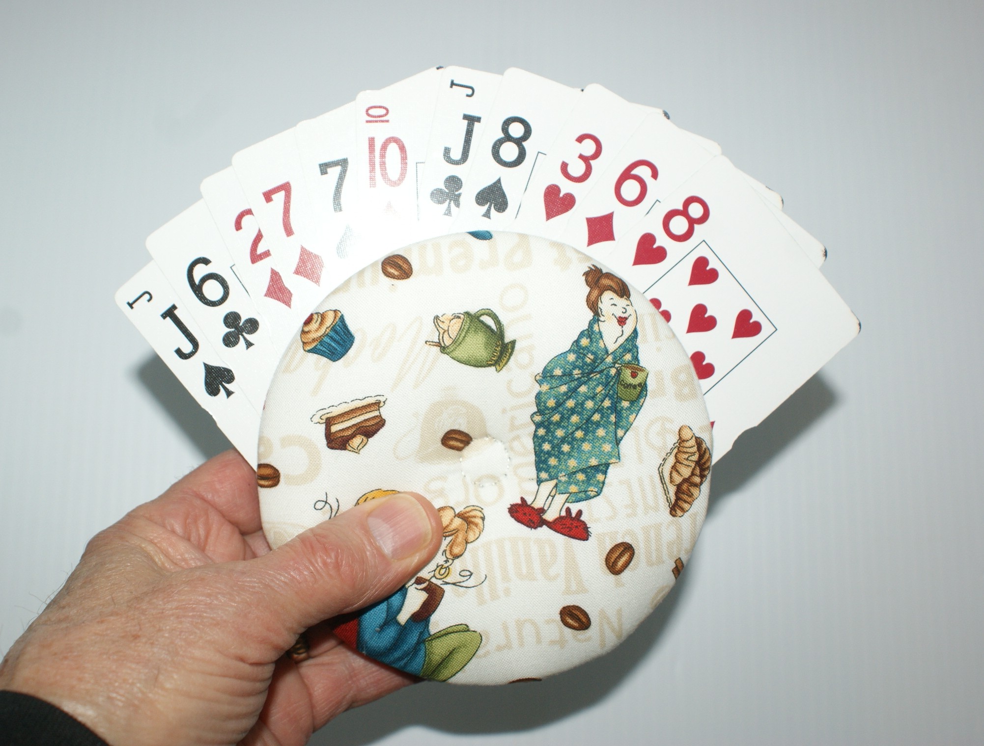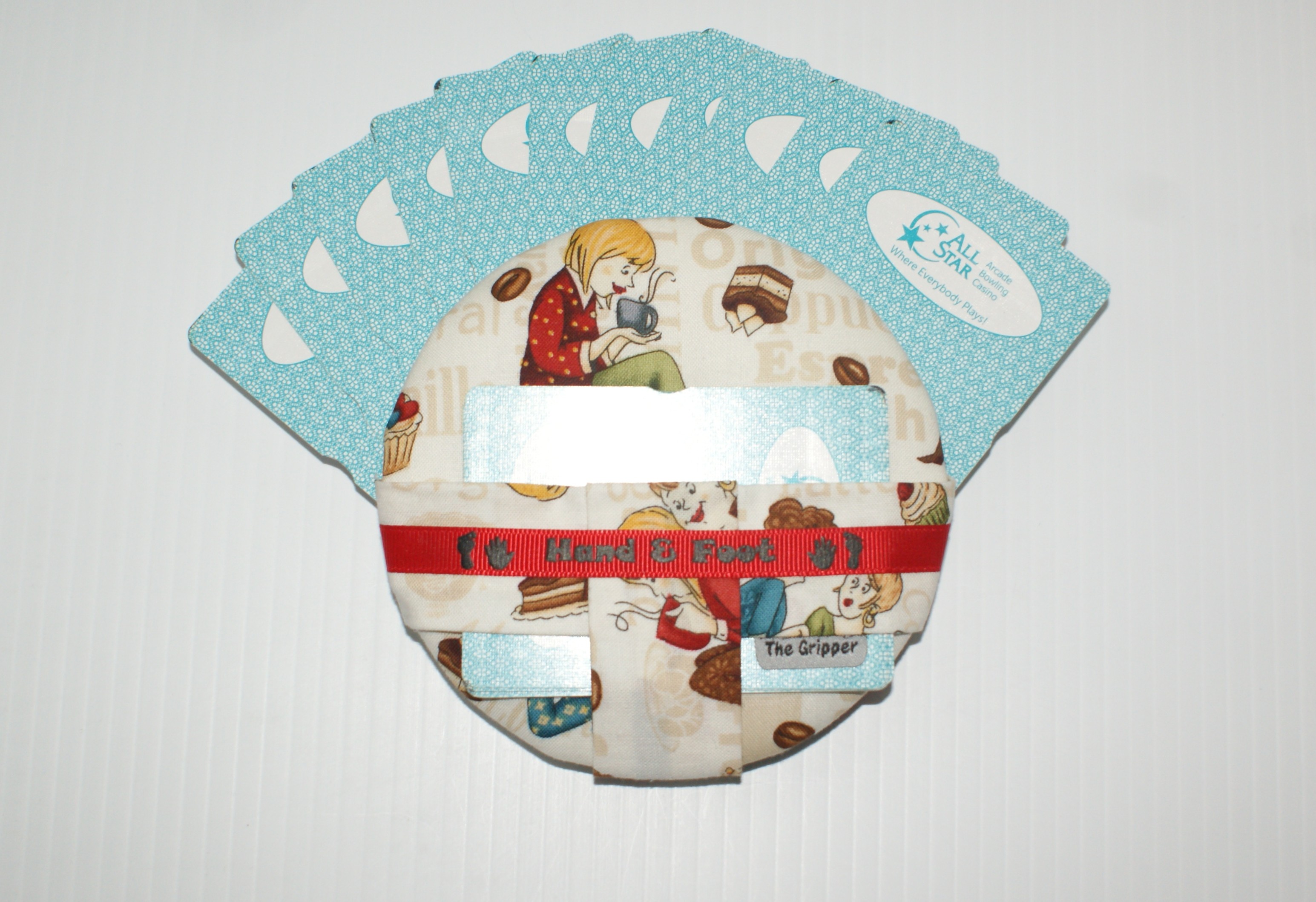 But while we were there I discovered that many retirees loved to play card games. However, I also learned that there were many who had problems holding the cards due to hand issues, way too many cards, etc. So I decided to set out to find a solution. After many trials and errors, I came up with a prototype which, after consulting with my wife (who has done quite a bit of sewing and quilting) I improved upon and set out to test my "invention" at craft fairs. To my surprise, they went over so well that I actually sold out at my first one! I quickly made more that evening and participated in another craft fair where I just about sold out again.