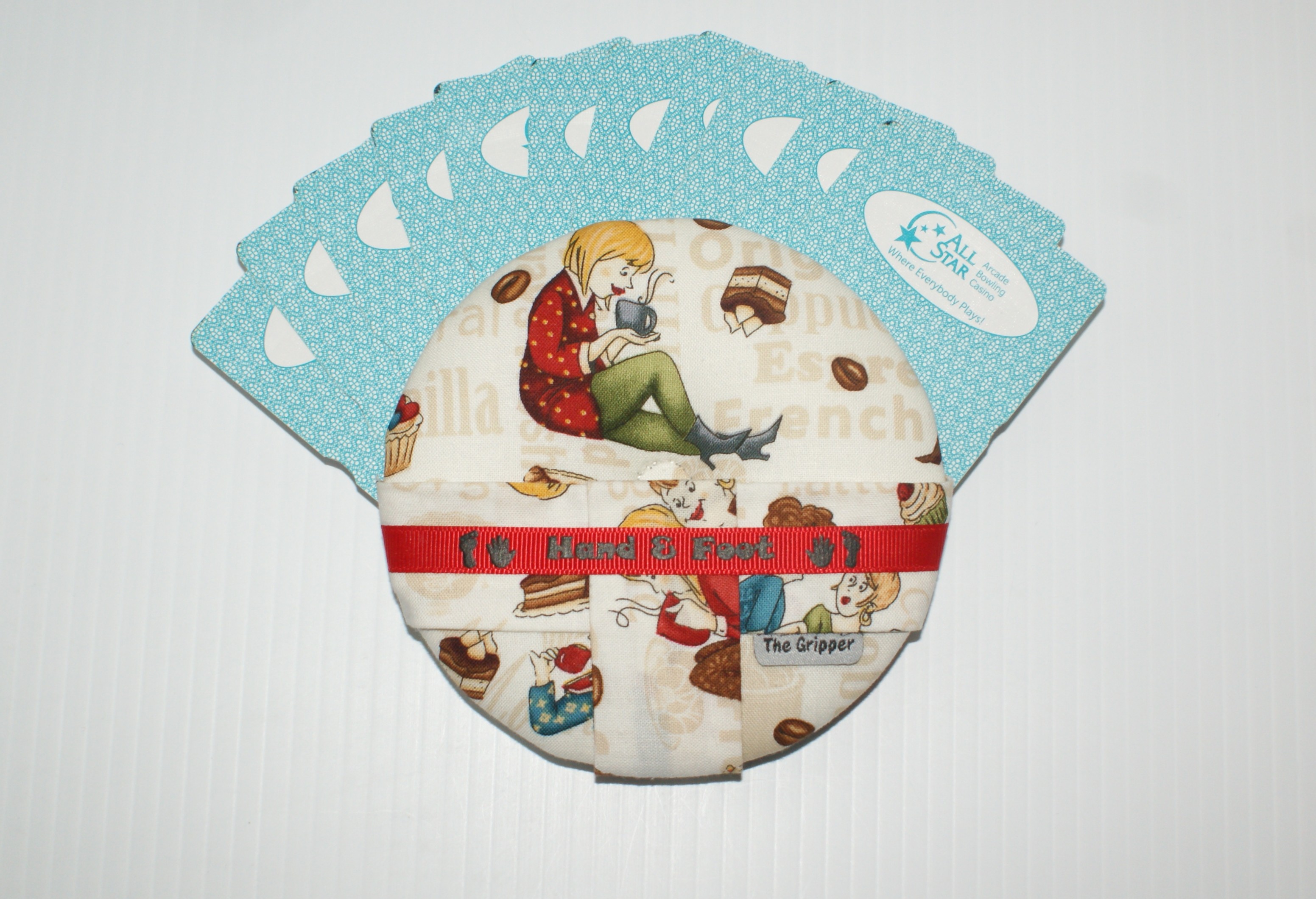 Made with quality materials, I create my Grippers in a little shop located in my backyard. I do it all: buy all the materials needed, prepare everything to be made into one of my unique playing card holders, package and ship them, and do all the advertising needed. This is actually a hobby of mine as I'm retired, so I try to keep things down so as not to turn it into a job!
