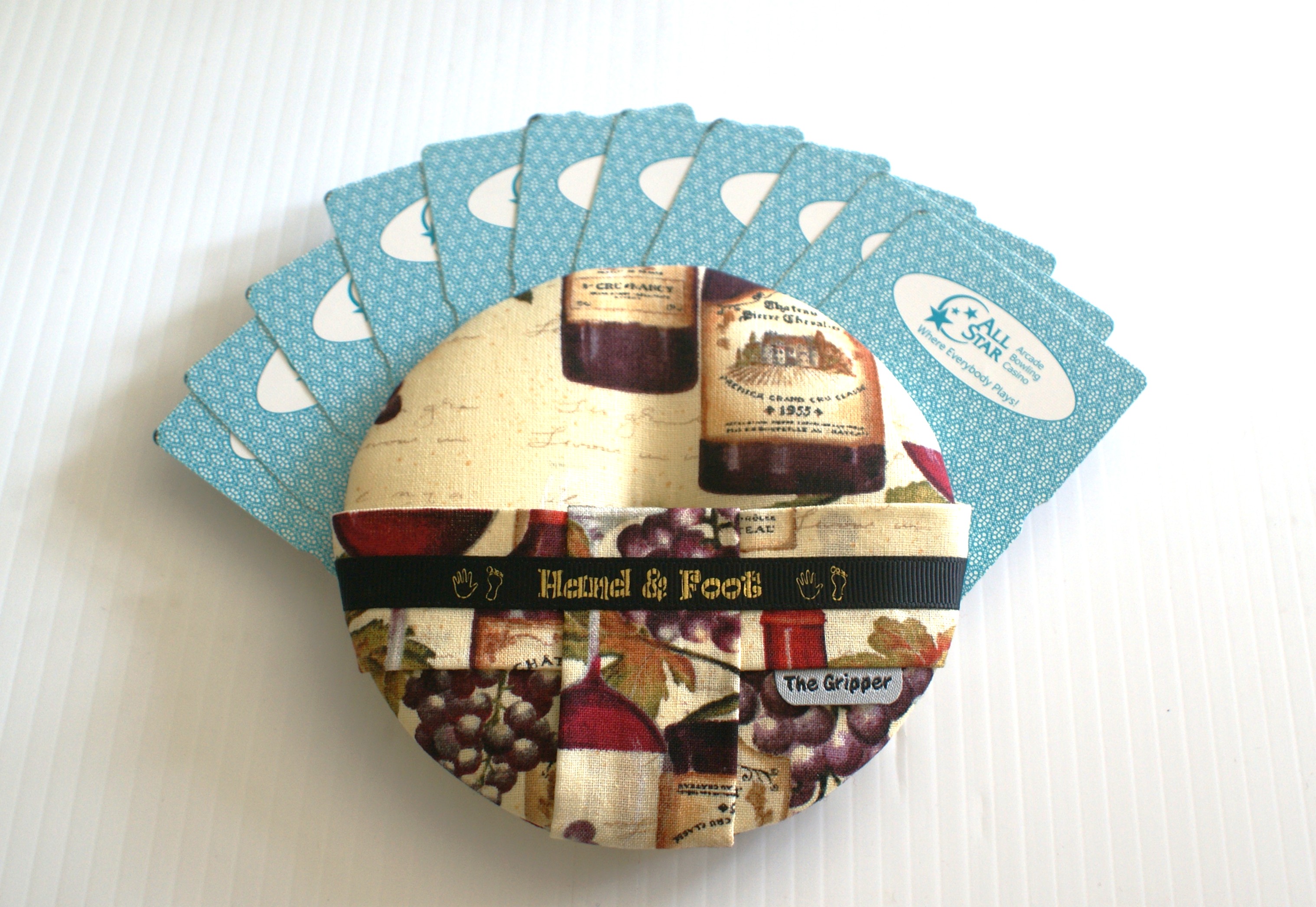 Made with quality materials, I create my Grippers in a little shop located in my backyard. I do it all: buy all the materials needed, prepare everything to be made into one of my unique playing card holders, package and ship them, and do all the advertising needed. This is actually a hobby of mine as I'm retired, so I try to keep things down so as not to turn it into a job!