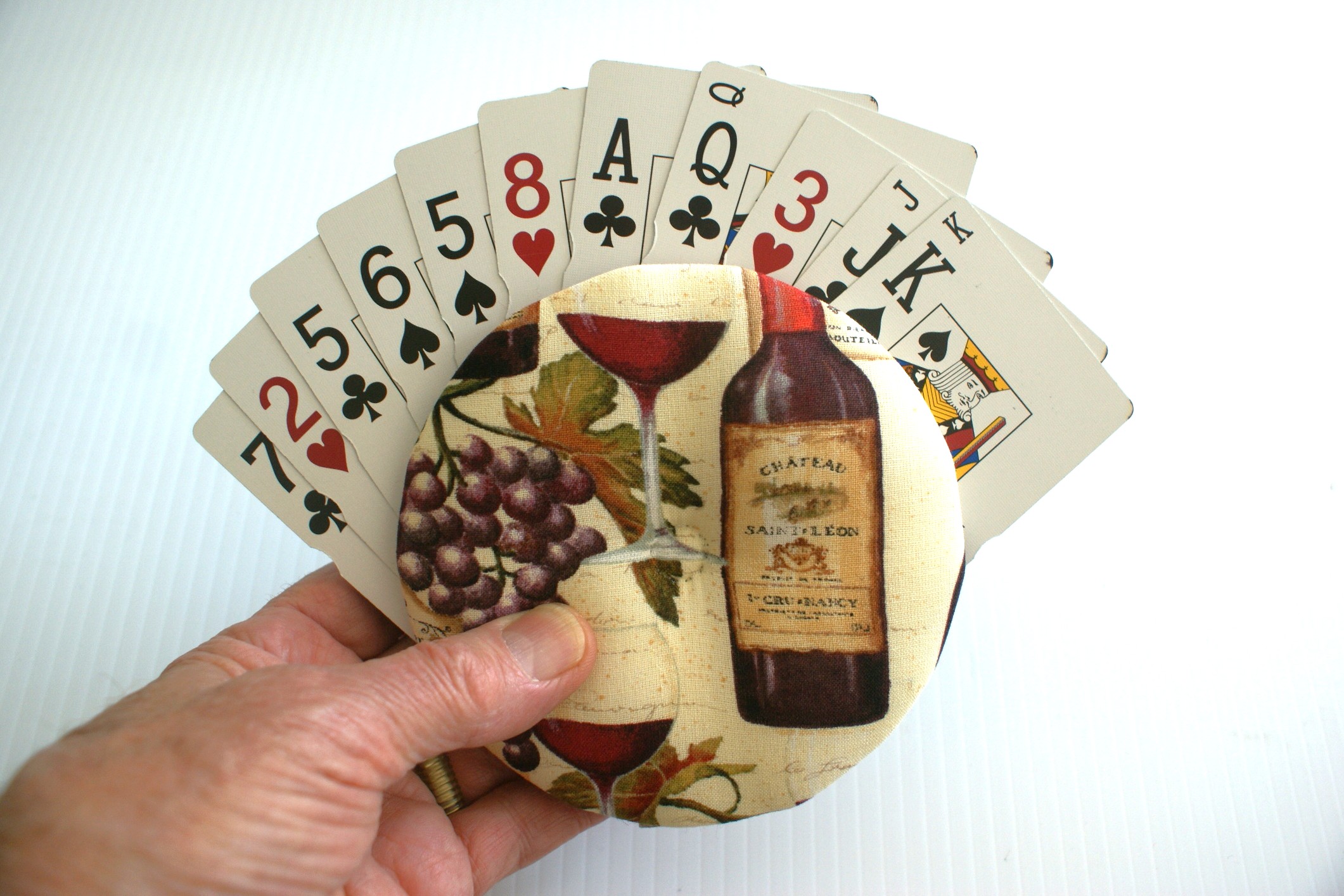 But while we were there I discovered that many retirees loved to play card games. However, I also learned that there were many who had problems holding the cards due to hand issues, way too many cards, etc. So I decided to set out to find a solution. After many trials and errors, I came up with a prototype which, after consulting with my wife (who has done quite a bit of sewing and quilting) I improved upon and set out to test my "invention" at craft fairs. To my surprise, they went over so well that I actually sold out at my first one! I quickly made more that evening and participated in another craft fair where I just about sold out again.