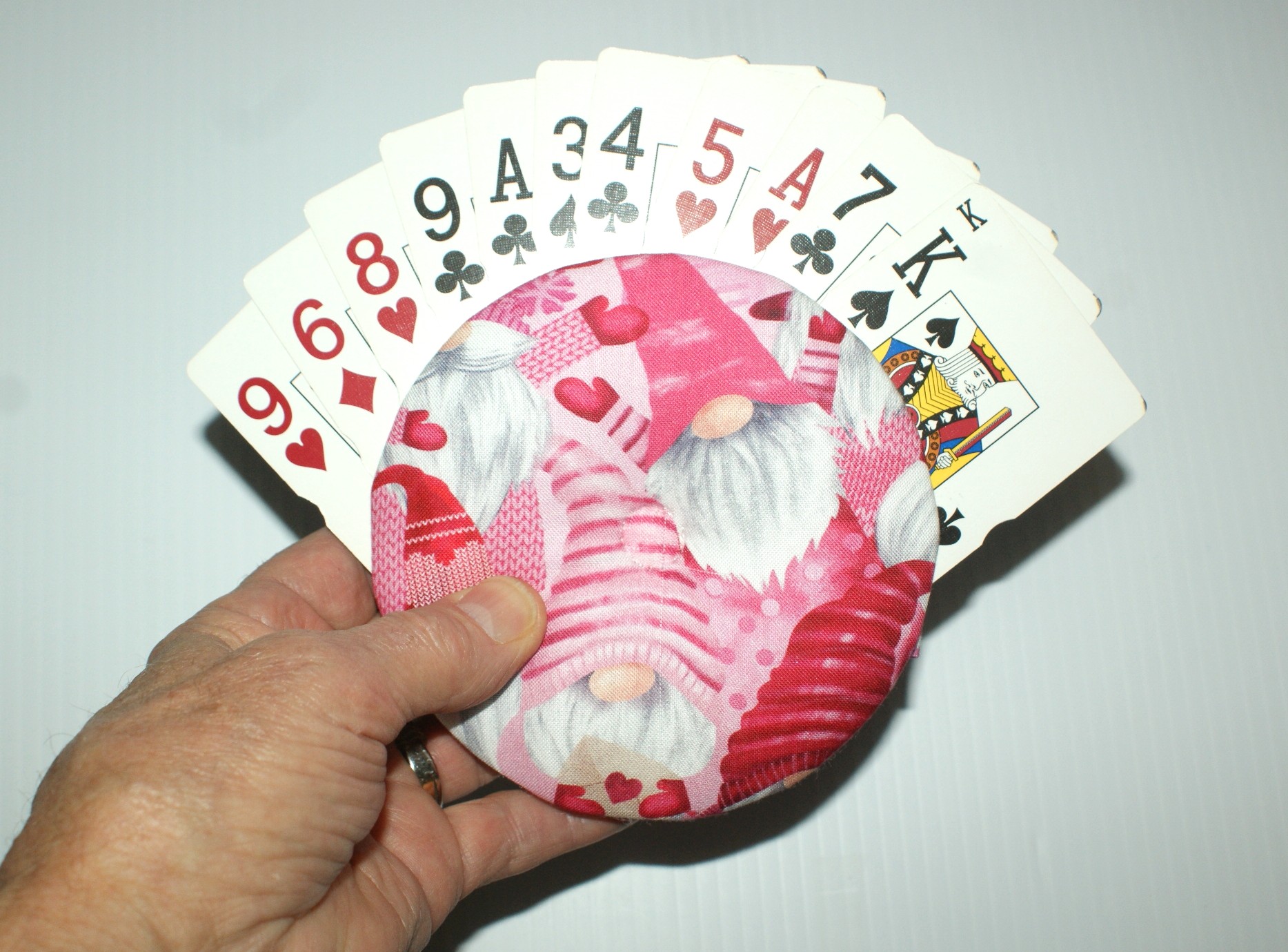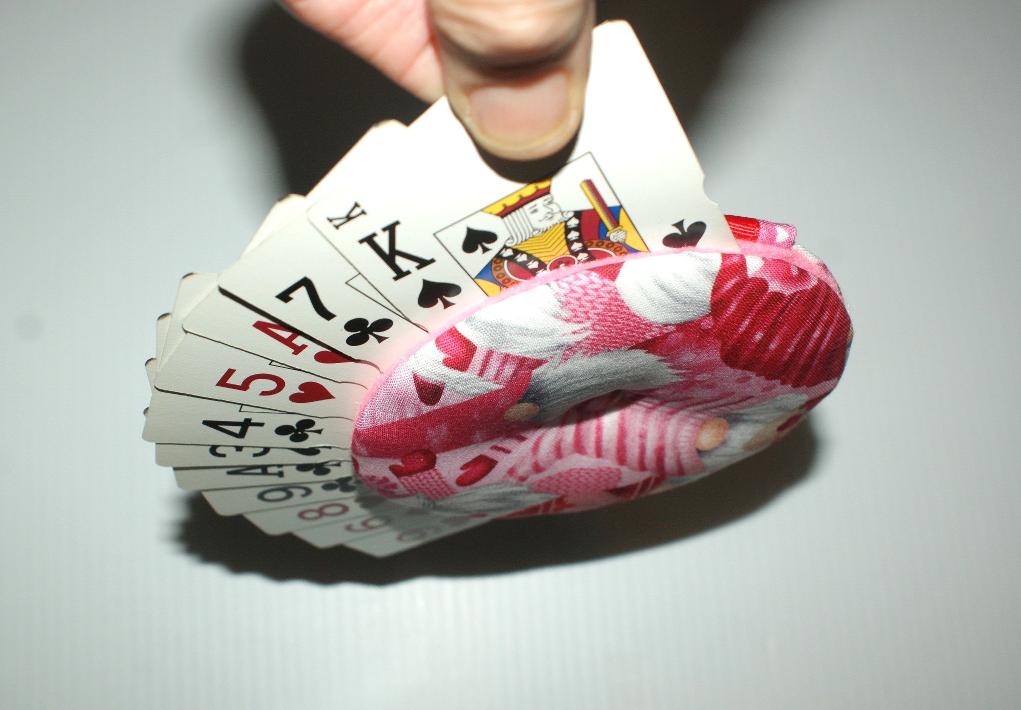 But while we were there I discovered that many retirees loved to play card games. However, I also learned that there were many who had problems holding the cards due to hand issues, way too many cards, etc. So I decided to set out to find a solution. After many trials and errors, I came up with a prototype which, after consulting with my wife (who has done quite a bit of sewing and quilting) I improved upon and set out to test my "invention" at craft fairs. To my surprise, they went over so well that I actually sold out at my first one! I quickly made more that evening and participated in another craft fair where I just about sold out again.