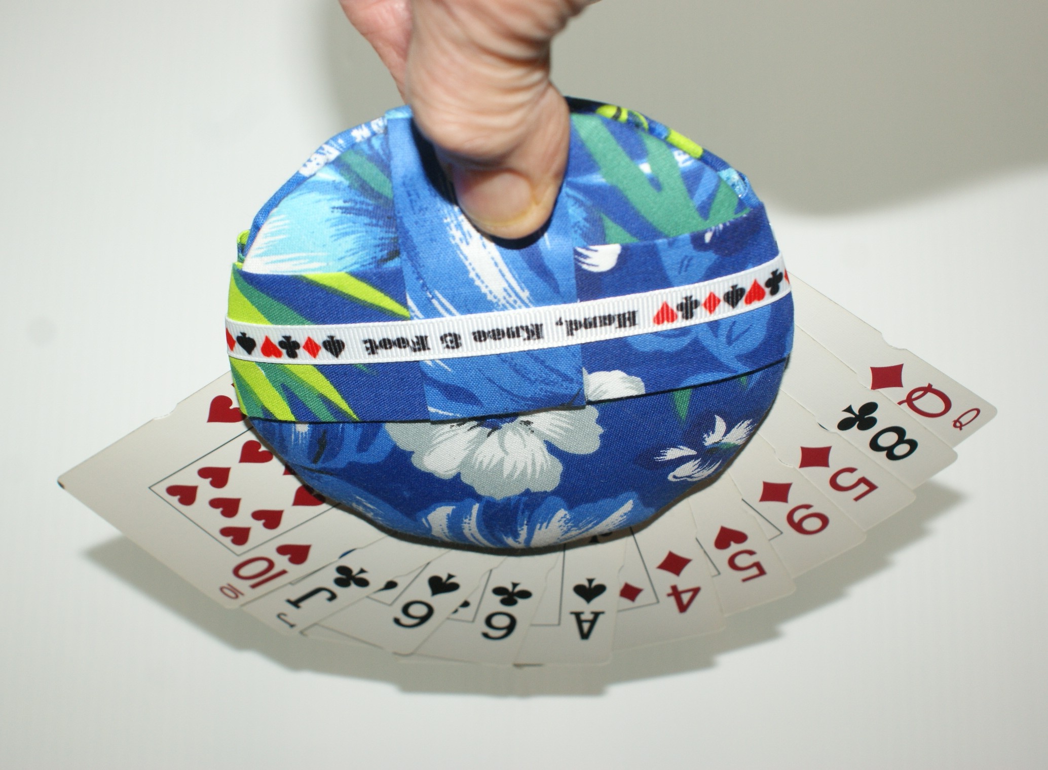 But while we were there I discovered that many retirees loved to play card games. However, I also learned that there were many who had problems holding the cards due to hand issues, way too many cards, etc. So I decided to set out to find a solution. After many trials and errors, I came up with a prototype which, after consulting with my wife (who has done quite a bit of sewing and quilting) I improved upon and set out to test my "invention" at craft fairs. To my surprise, they went over so well that I actually sold out at my first one! I quickly made more that evening and participated in another craft fair where I just about sold out again.