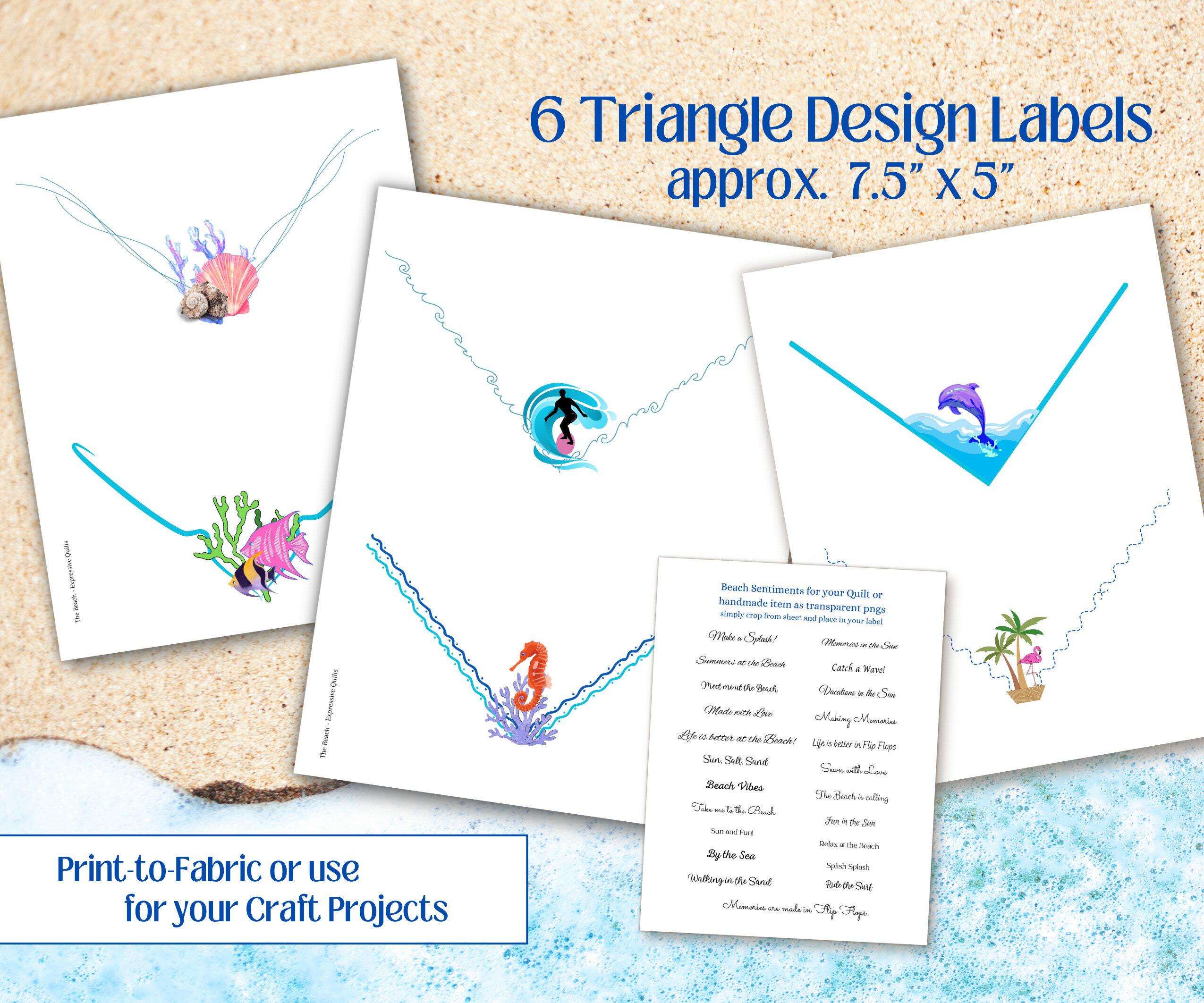 There are 22 labels to choose from and a Bonus Sheet, plus a Sentiments Page with Beach sayings and slogans to crop and add to your label. In the era of Modern Quilts or Mod Quilts, we can share a little summer and beach fun in our labels. • This venture: "The Beach" was suggested by a customer - I hope you enjoy these labels as well. They can be used in fabric handmade items as well as any craft idea you may have. Can be used to create product tags for your business or gift ideas. Quilt labels may be hand appliqued along the top, machine sewn, or created as fusible appliqué. * Of course, you will need to have some knowledge of working with computer software. Free Canva online is perfect for creating your label! Labels are sized to print onto a standard 8-1/2” x 11” printable fabric sheet using your own printer. (You will receive a PDF as well as JPEGs, which may be cropped and enlarged by 20%) Included in this file are: 6 Triangle Labels as jpegs (zip file) - 12 labels 4x5" as (zip file) and also a pdf zip file - (also a sentiments page, may be cropped as jpegs, or used just for inspiration.) ••• IMPORTANT - Follow instructions on the manufactured inkjet fabric pack. Please! Any Questions? - Contact me, I want you to be happy with these labels! Other methods of using your created fabric sheet will work fine. • Join my email list for discounts and freebies - as well as important information on printing to fabric. Visit: https://expressivequilts.com/blogs/quilt-labels-printing-to-fabric-how • An instruction sheet will be included to help import into the word processing program. • I'm a designer, not responsible for various results; however, this is an exciting creative venture, and possibilities are endless! If you have any questions, please do not hesitate to contact me! •• and our email list: https://expressivequilts.com/apps/seguno/subscribe for "Freebies" .. and more things to come. ** Digital Download - No physical product will be sent - you may print these using Adobe Acrobat Reader or use them as JPEGs (photos).
