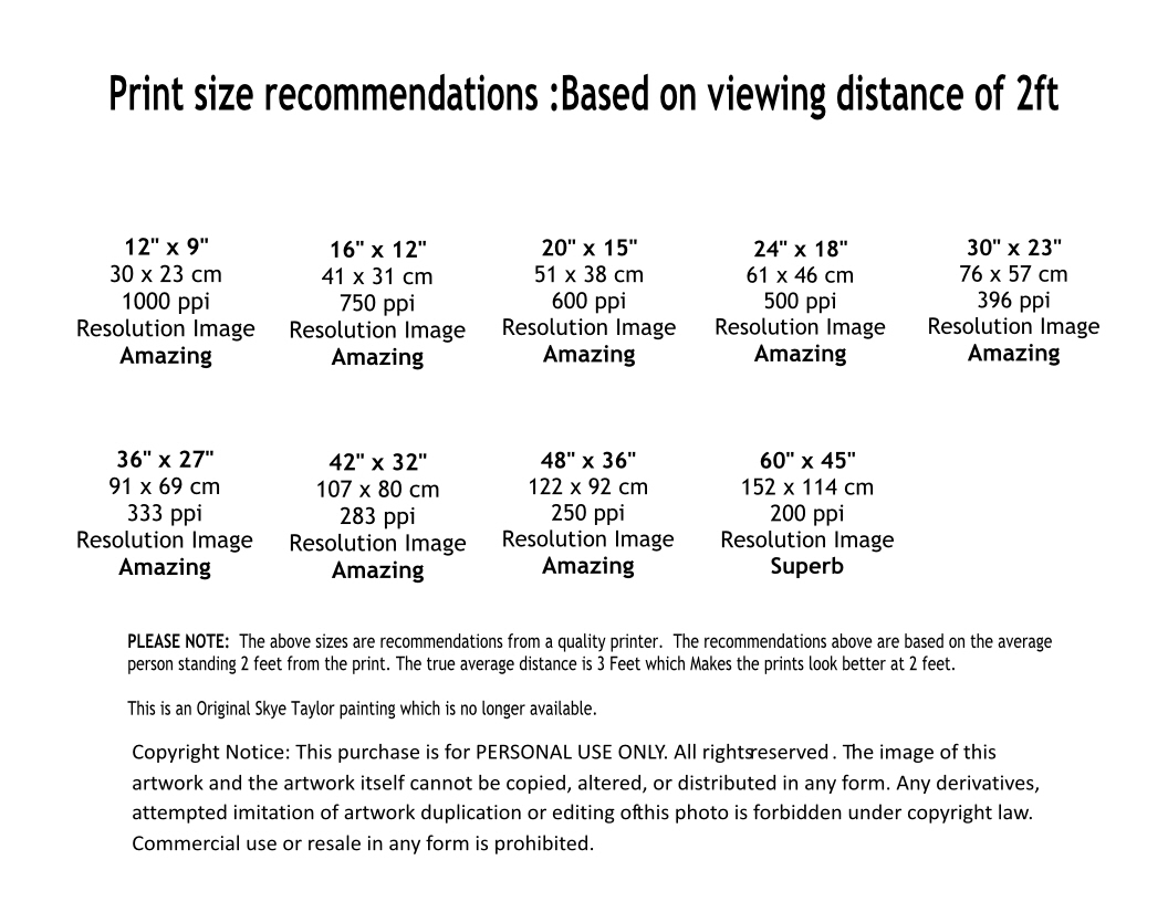 * Printable sizes up to 60" x 45" (See Size Chart in Photos )
