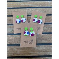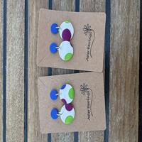 Each handcrafted clay earring is rolled, cut, and shaped by hand. Once baked, it gets covered in resin for a glossy finish and sanded for smoothness. Hypoallergenic studs are sturdy with super glue adhesive and liquid polymer clay. These materials make for a very lightweight earring!