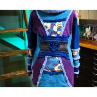 I design these elegant pieces with upcycled strips of felted wool sweaters. The unique features delight the eyes, including creative front pockets and appliques, which gracefully follow your figure.