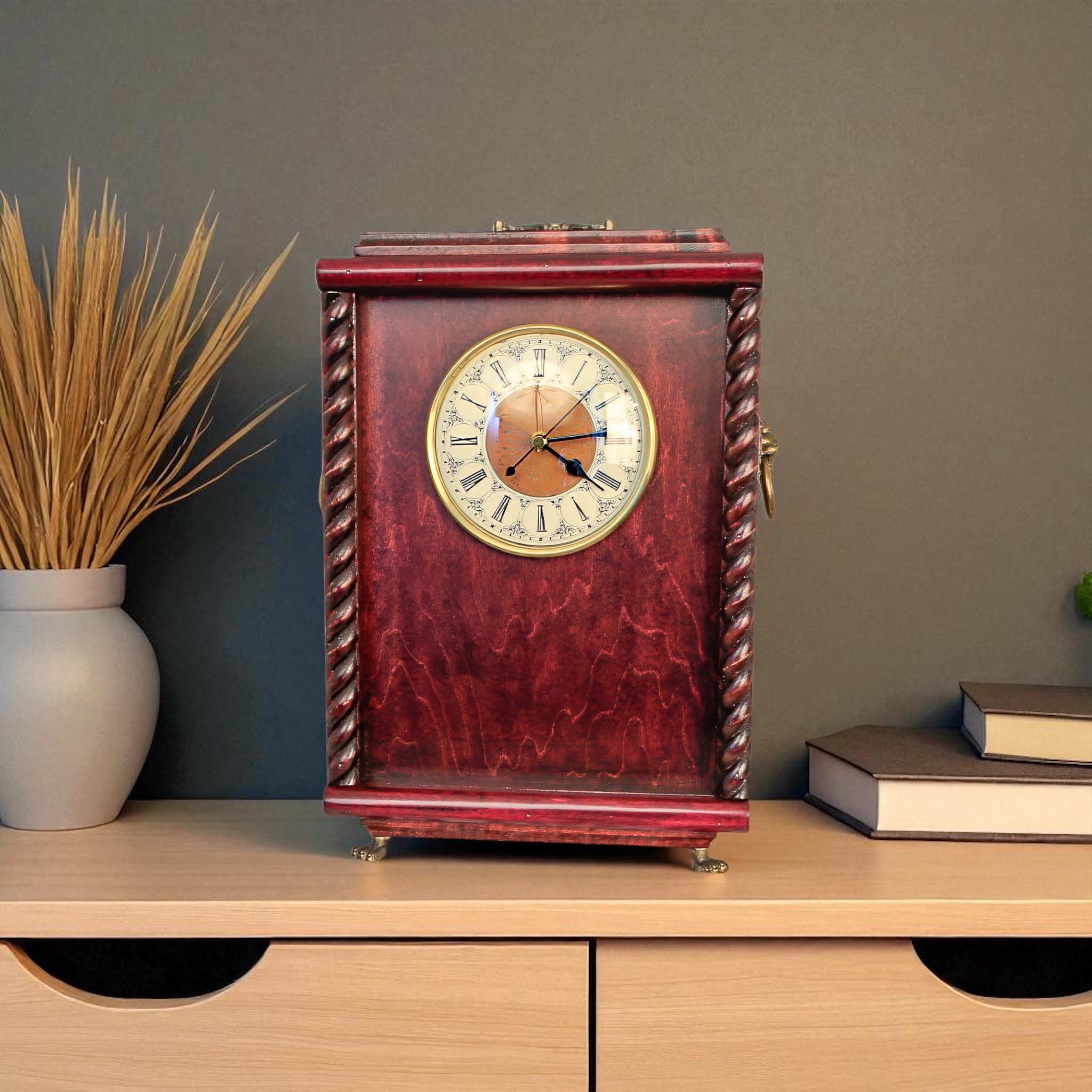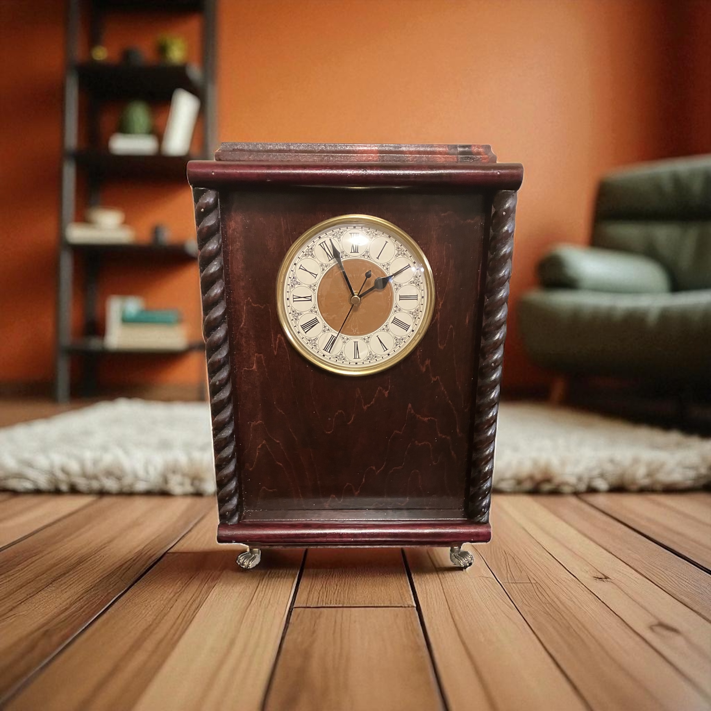This Curly Maple Clock is a beauty she stands at 14 1/2" tall and 10" wide with beautiful lion heads and feet that resemble the older clock charm. She has a beautiful deep rich look that you will love and she feels to the touch a buttery feel that makes her feel like the more expensive designs at a fraction of the cost. You will not be disappointed with this beauty at 5 lbs. and 5" deep she will stand proudly on your mantel or shelf. This is a one of a kind design.