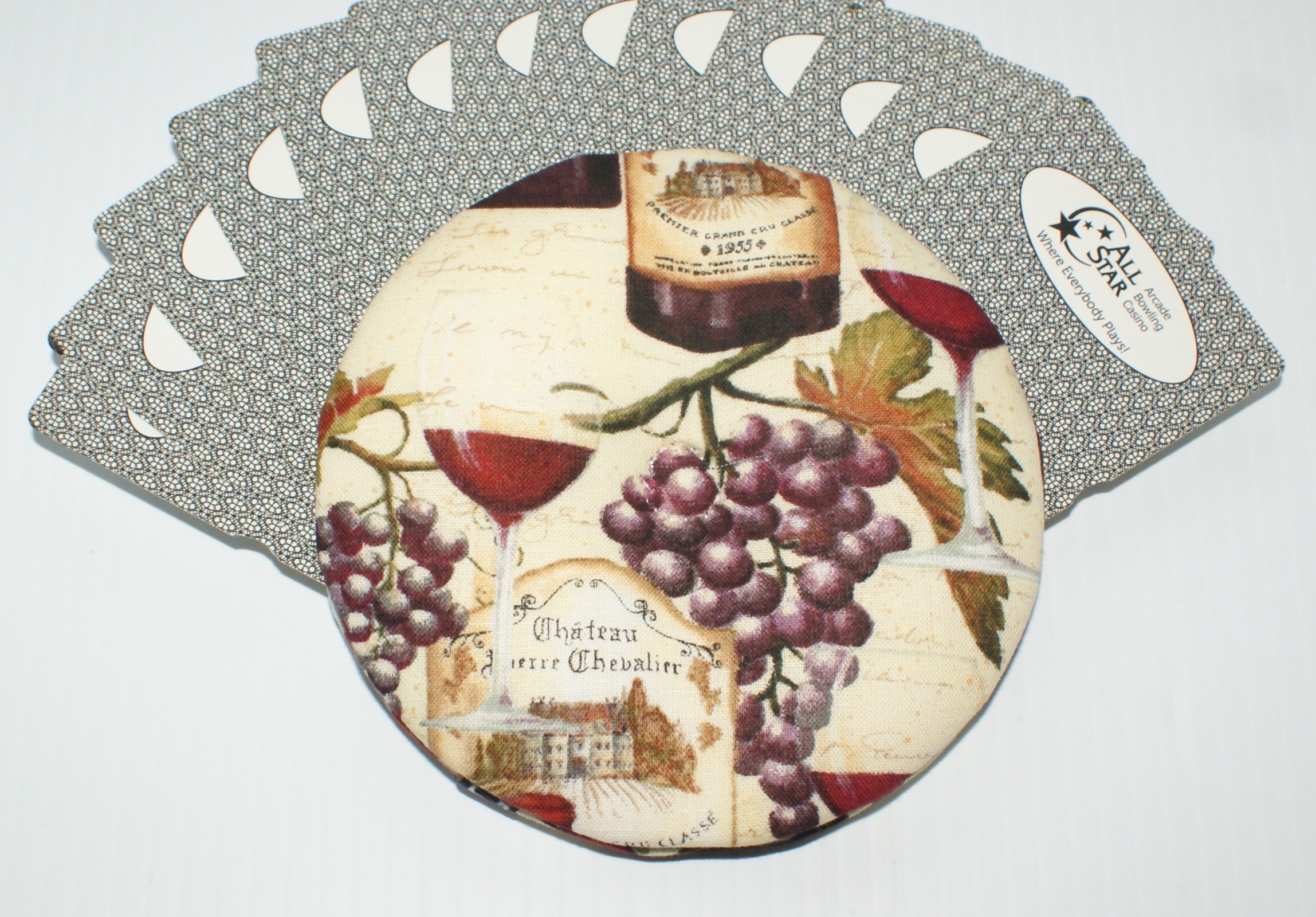 Made with quality materials, I create my Grippers in a little shop located in my backyard. I do it all: buy all the materials needed, prepare everything to be made into one of my unique playing card holders, package and ship them, and do all the advertising needed. Unlike all the imitators out there, all my Grippers are meticulously made with love and great attention to detail. There are many steps involved with each one including but not limited to, making the decision on where to cut the fabric to best fit the image. Also involved is the fabric decision to be used on the back of the holder. I use different types of glues, padding & felt. Due to that, each playing card holder actually takes anywhere from 1 to 2 days to complete. Whew! :o)