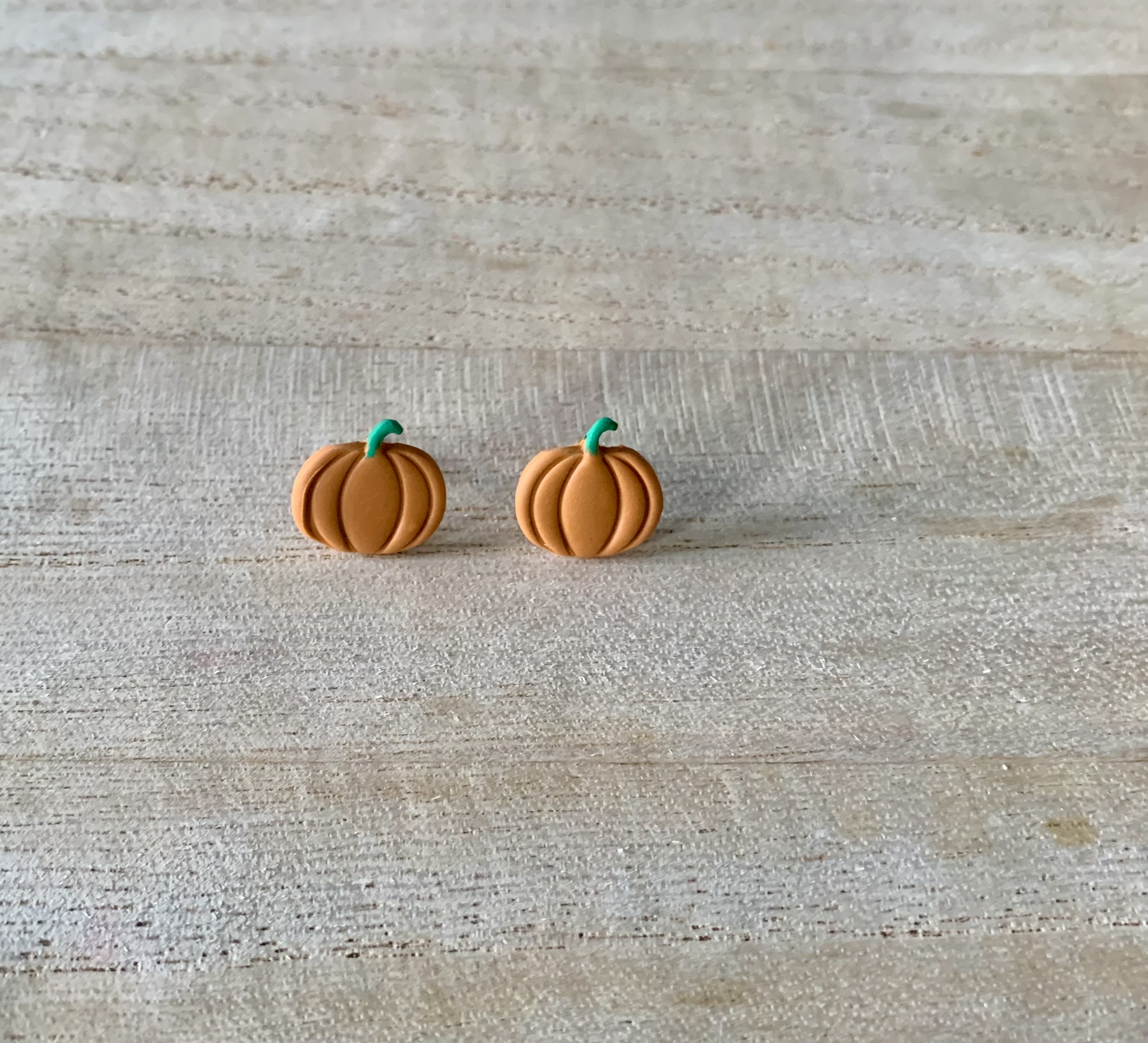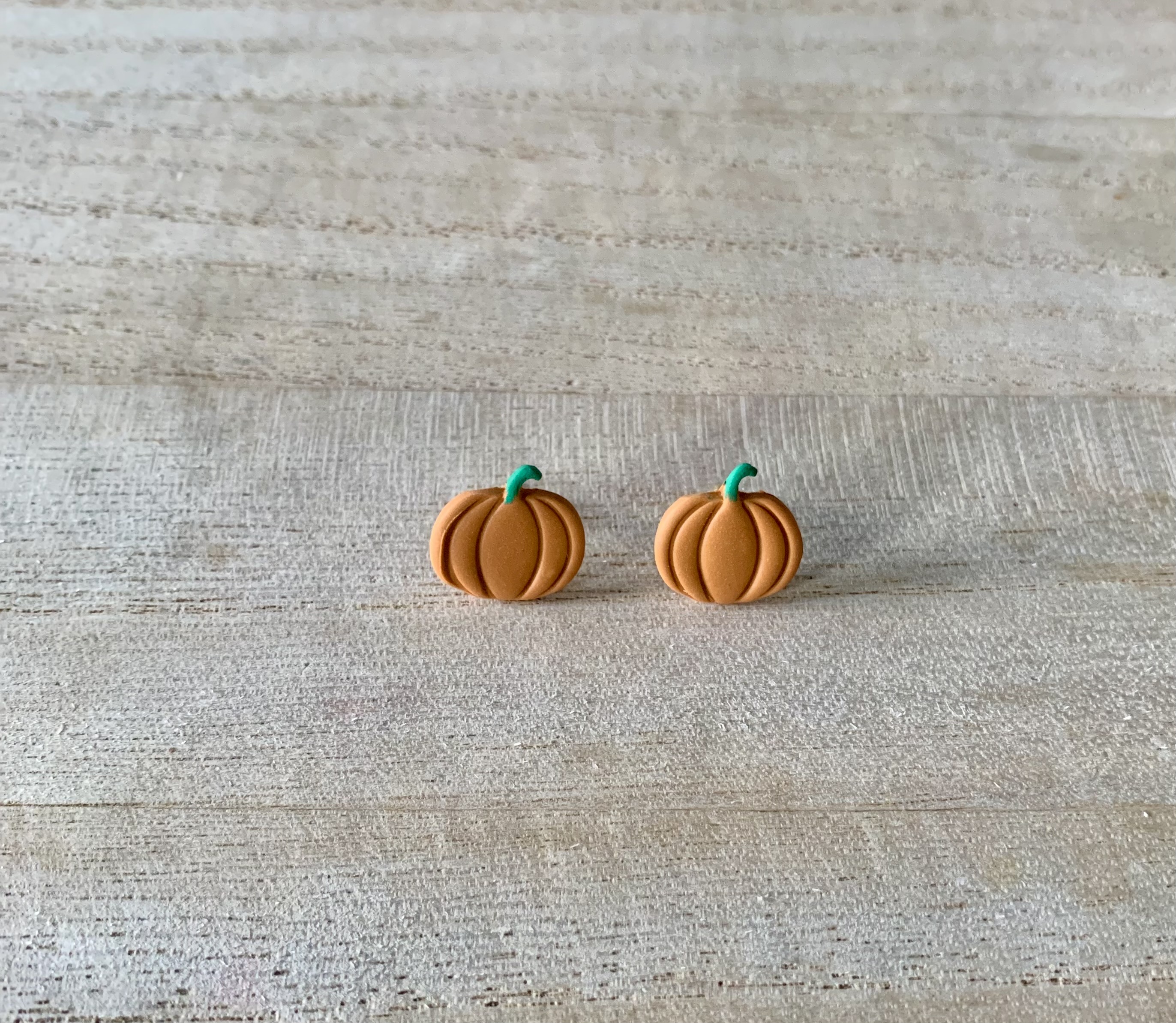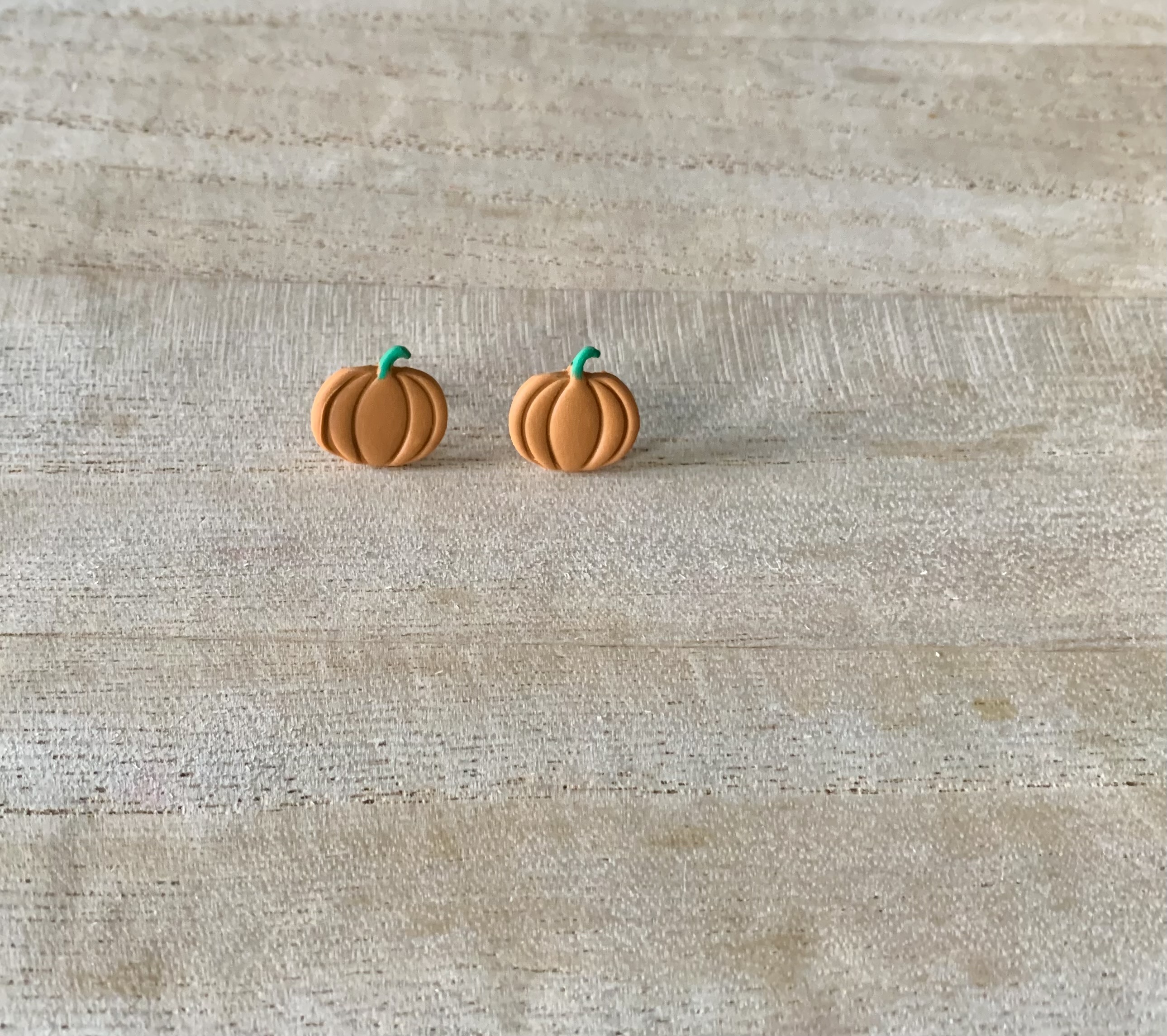 Bring cozy fall vibes to your style with these Handmade Mini Pumpkin Earrings. Each earring is carefully made from polymer clay in a rich burnt orange pumpkin hue with a charming green trim top, capturing the beauty of autumn harvest season. These mini cuties are lightweight, hypoallergenic, and comfortable enough for all-day wear, making them perfect for sensitive ears.