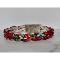 This stunning 3 strand braided vibrant multicolored plaid leather bracelet and is finished off with a rectangular shaped magnetic clasp. Last photo shows clasp options.