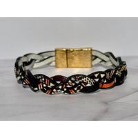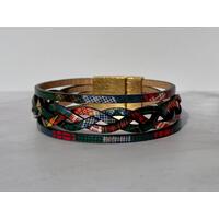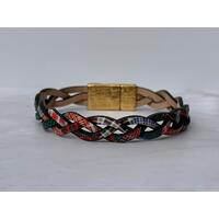 This stunning braided vibrant multicolored leather bracelet and is made with a nickel free silver plated rectangular shaped magnetic clasp. Last photo shows clasp options.