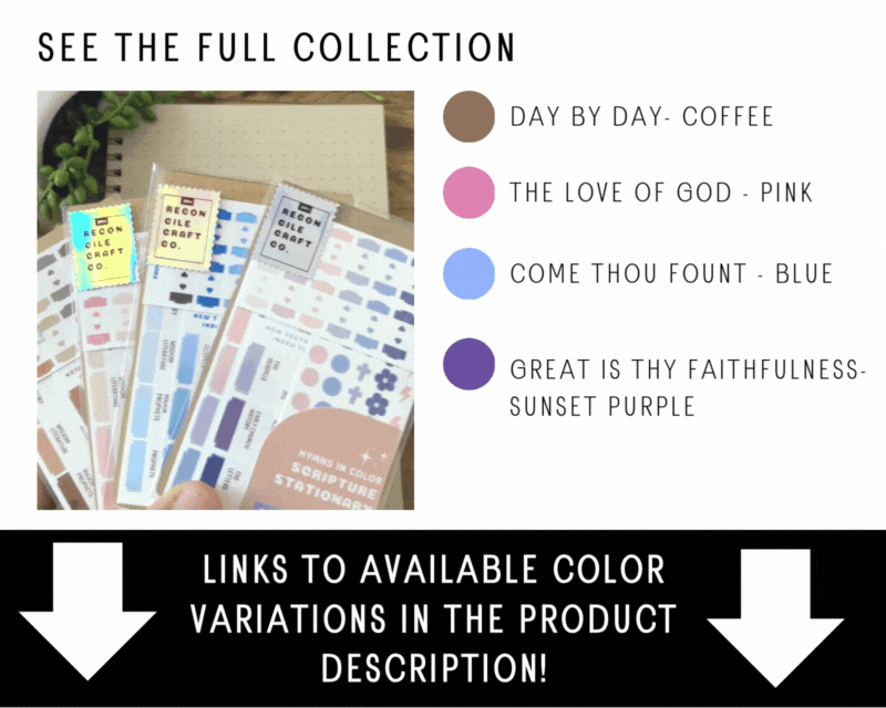 Each colorway in this series is paired with a beloved hymn. Its theme reflected through the palette, the mood, the resources, and the purpose of the tools inside.