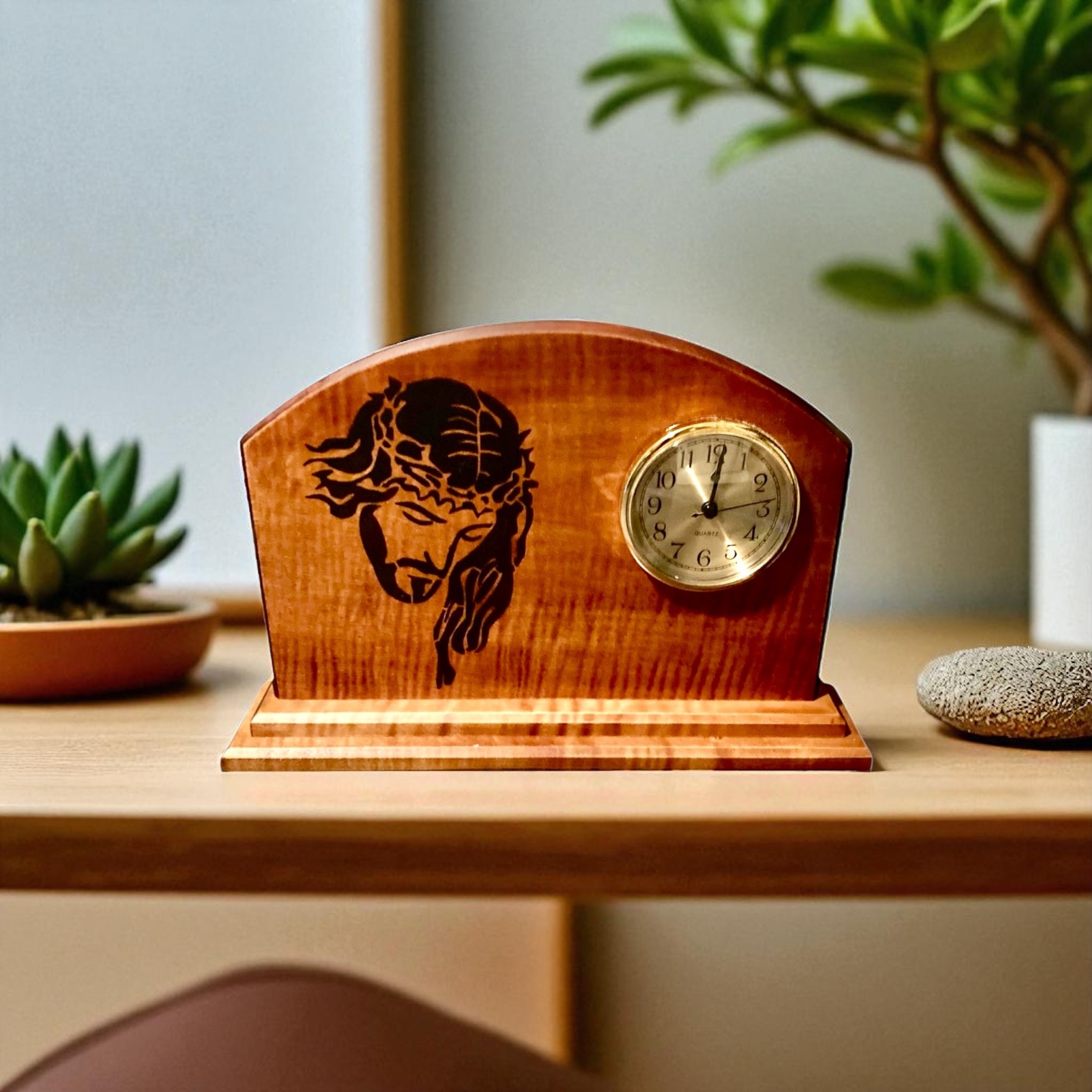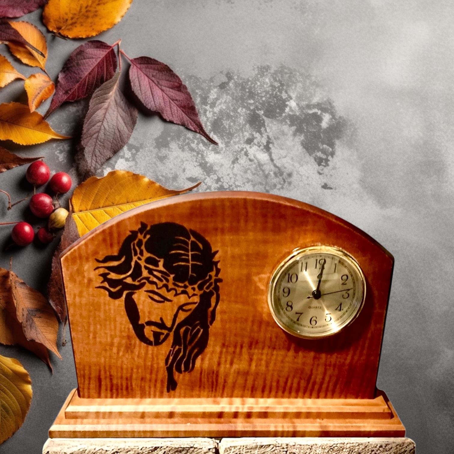 This Curly Maple Clock is designed for those that want to show their faith to others that would appreciate it's beauty. a beautiful message for a beautiful clock.