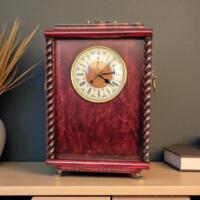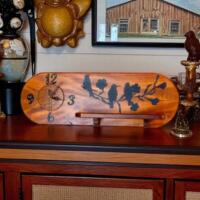 This beautiful Curly Maple Lions head Clock is that perfect gift for the man in your life, he'll enjoy the masculine look of this clock. It has a quartz movement for that set and forget it feeling, it runs on a AA battery. This clock feels as good as it looks, with the curl in the wood popping from the rest of the finish to give it that tiger stripe look. A beautiful medium brown to honey amber finish with a touch of danish oil. This clock is 5 1/2"w. x 3" d. x 14" h.