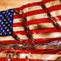 Honor the spirit of 1776 with this striking, handcrafted wooden American flag. Each piece is meticulously carved and stained to showcase the timeless beauty of the wood grain, while the edges are expertly burned to create a bold, tattered effect that symbolizes resilience and freedom. Embedded with genuine bullet casings as stars, this flag is not just decor—it's a statement.