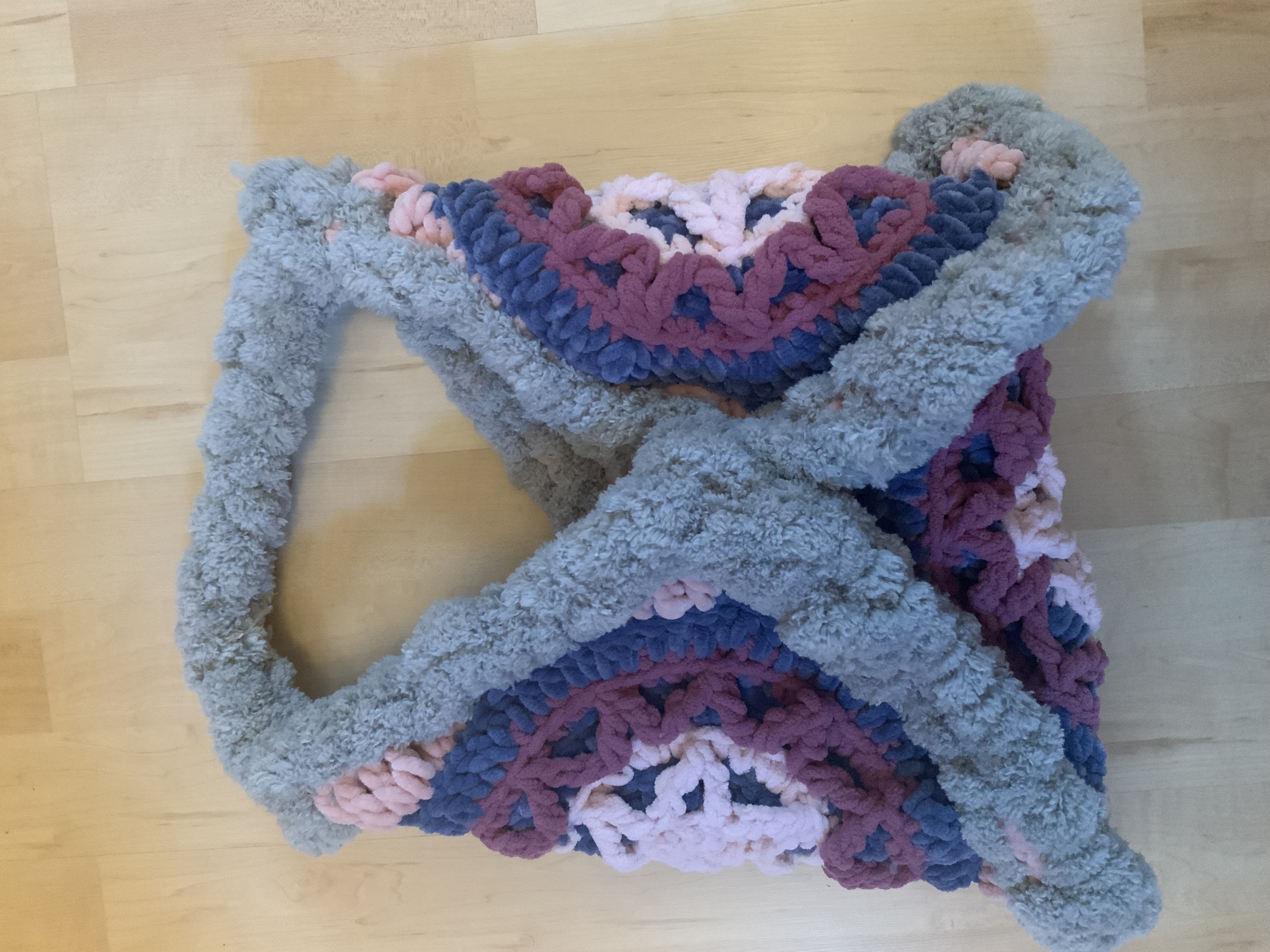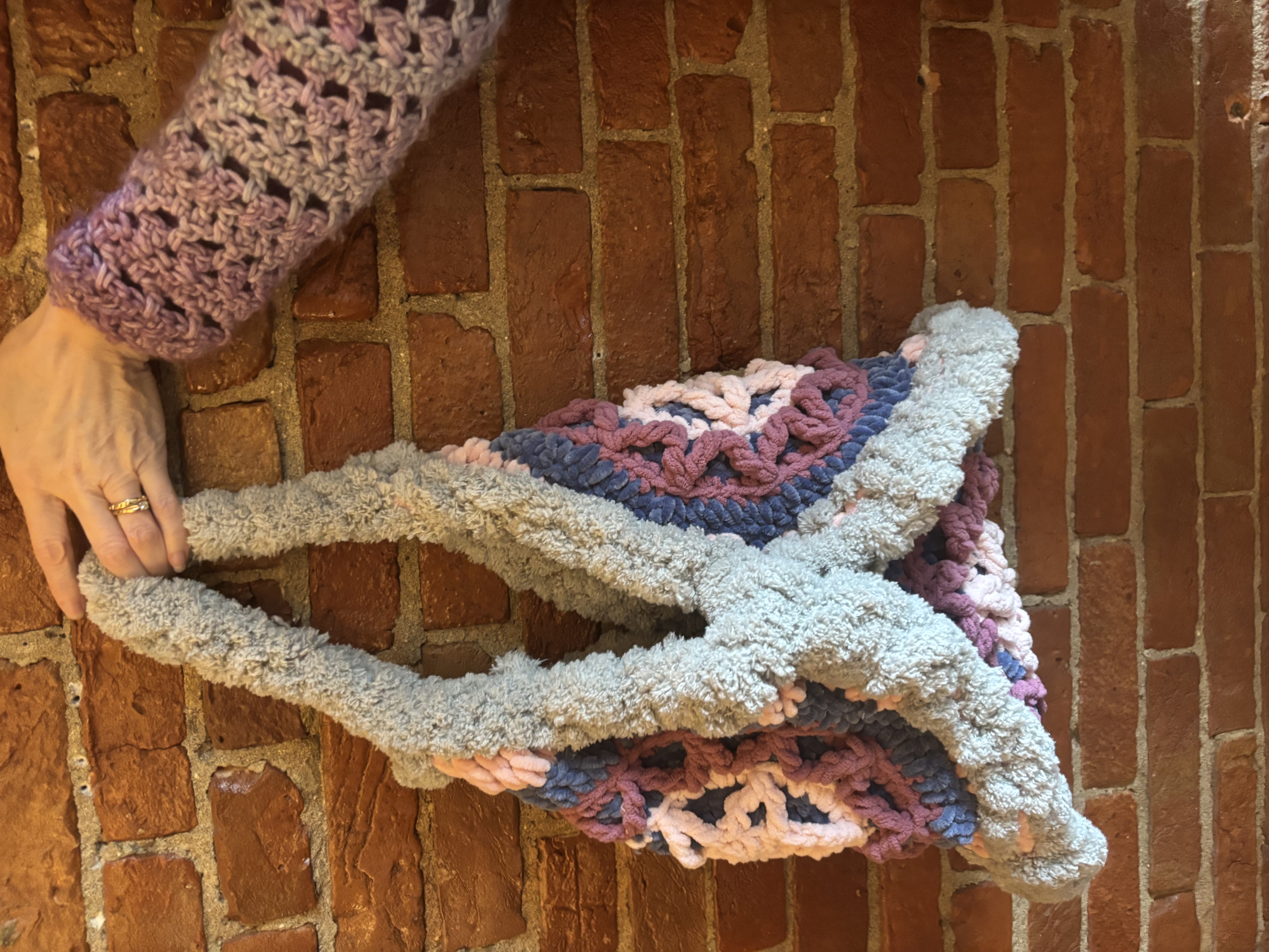 I created this bag as three circles what I wanted were mandelas. I always want to do Mendelas or mosaic crochet. I got the idea for the Mandela from “Is all in a nutshell crochet”. I used a chenille yarn and made them with an overlay, front post crochet. This was a very cool project and I hope that it increases your joy.