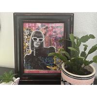 This captivating digital artwork blends classical renaissance cherub-like figures with a modern surreal twist. Centered around a child in a suit and tie, this piece features several ethereal angel heads floating around his head. Above them, the handwritten message “The Voices Say Hi!” adds a personal and playful element. This composition evokes themes of inner voices, innocence, deeply spiritual moments, mental illness and surreal encounters, presenting a whimsical yet thought-provoking narrative. Digitally collaged from open domain images by Hannah Moody. Limited edition only, 100 made.