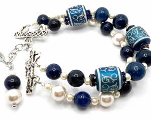 Blue Scroll & Pearl Double-Strand Bracelet