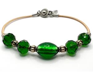 Three Crystal Cut Glass Beaded Stack Bracelets in Emerald, Pu...