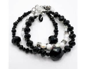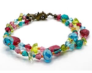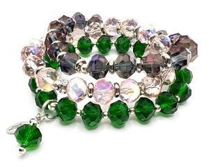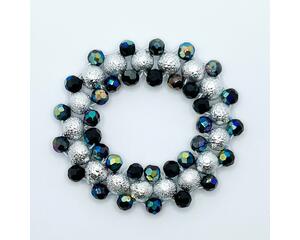 Silver Double-Strand Bracelet with Iridescent Beads and Crystals