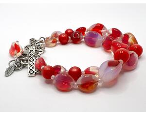 Pink Crystal Double-Strand Bracelet with Rhinestone Heart