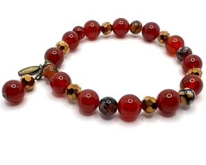 Carnelian Burnt Orange and Fire Agate Stretch Bracelet