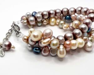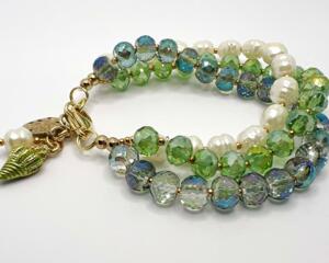 Crystal and Pearl Three-strand Bracelet with Shell Charms