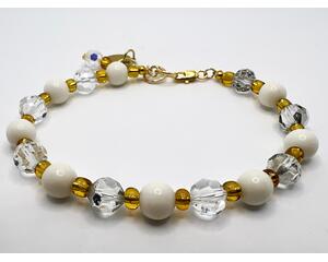 Crystal and White Bead Bracelet with Gold Accents