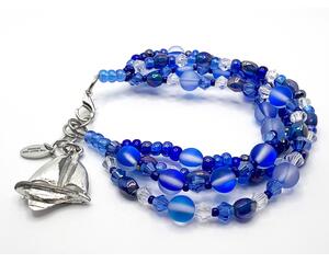 Blue Glass and Crystal Four-Strand Beaded Bracelet with Sailb...