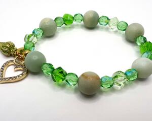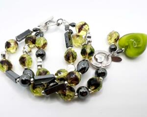 Green & Hematite Glass Heart Charm Bracelet