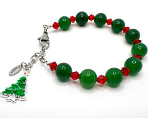 Green Agate Christmas Bracelet with Tree Charm