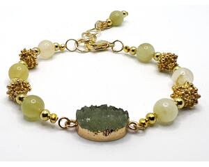 Semi-precious Green Beads and Gold Nugget Bracelet