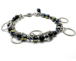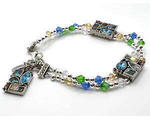 Silver Double-Strand Bracelet with Iridescent Beads and Crystals
