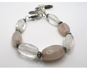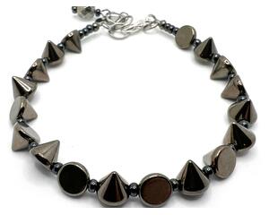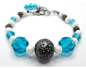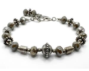 Gray Iridescent Crystal and Silver-Colored Beaded Bracelet