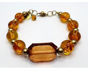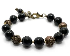 Black Glass and Honey Crystal Beaded Halloween Bracelet with ...