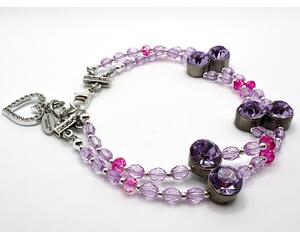 Lavender Crystal Double-Strand Bracelet with Rhinestone Heart