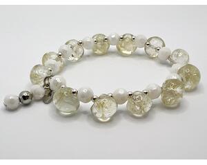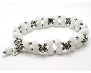 White Faceted Glass and Rhinestone Beaded Stretch Bracelet