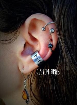 Viking Ear Cuff - Custom Elder Futhark Runes - Viking Beard B...