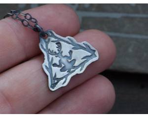 Cernunnos Triangle Tree Branch Pendant - Fine Silver Charm Ne...