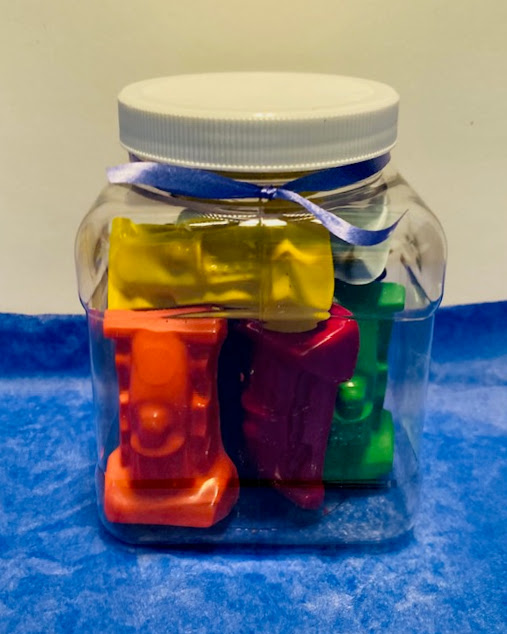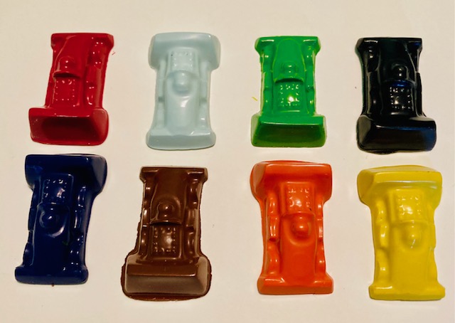 You are looking at purchasing a set of race car coloring crayons. You will get a random color set of thirteen race cars in a jar that can be used again for any items you want to put in there.