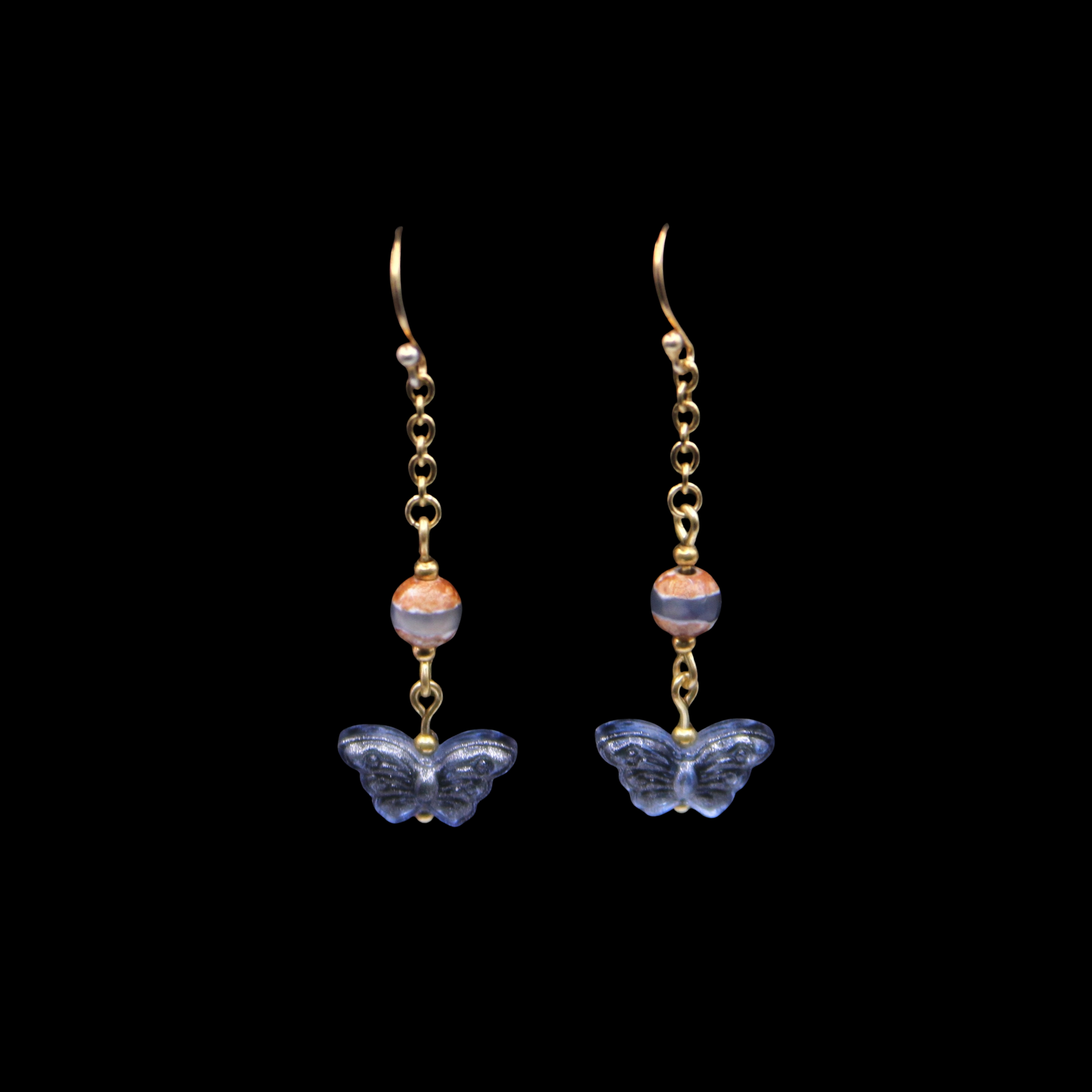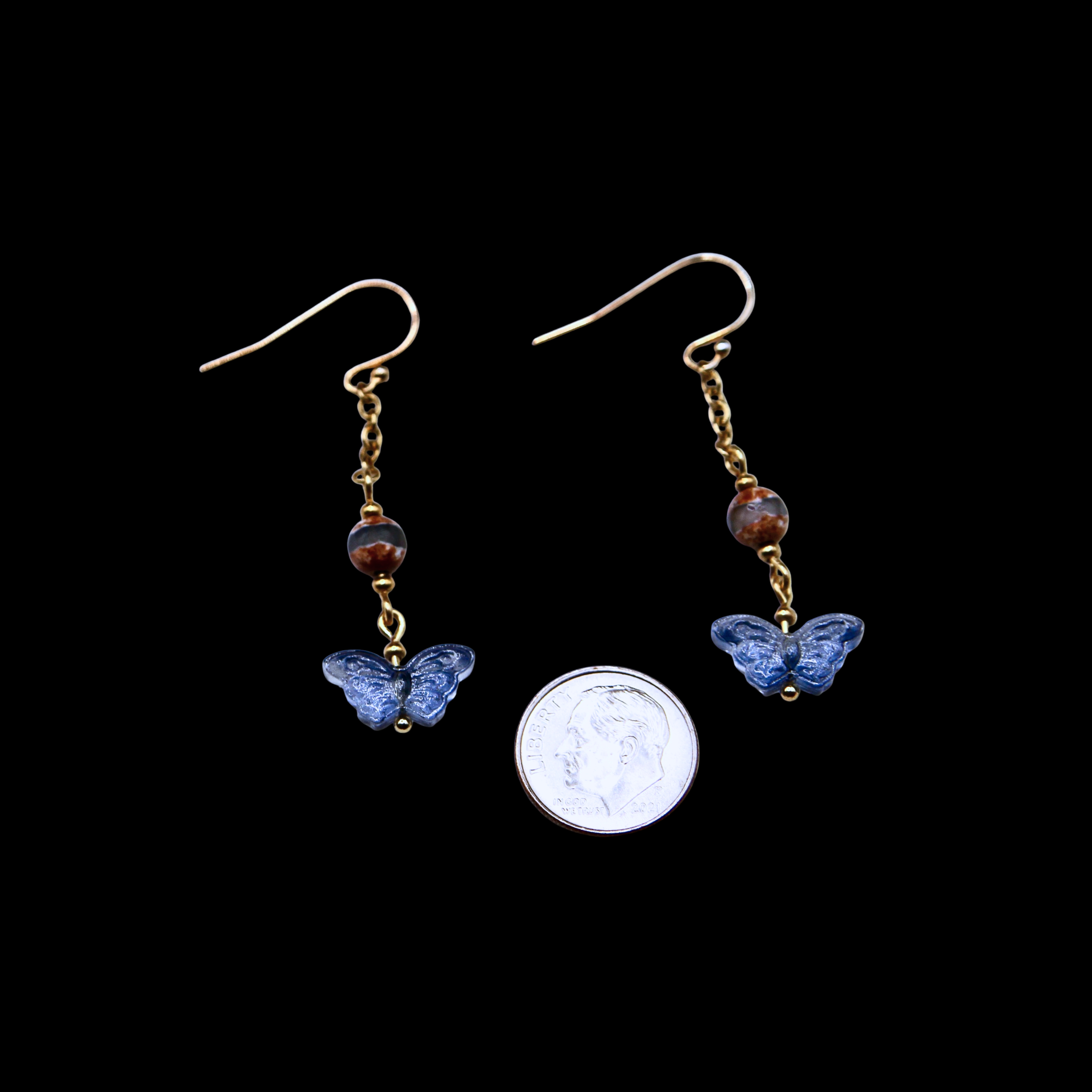 > Ink Blue Translucent Glass Butterfly Charms
