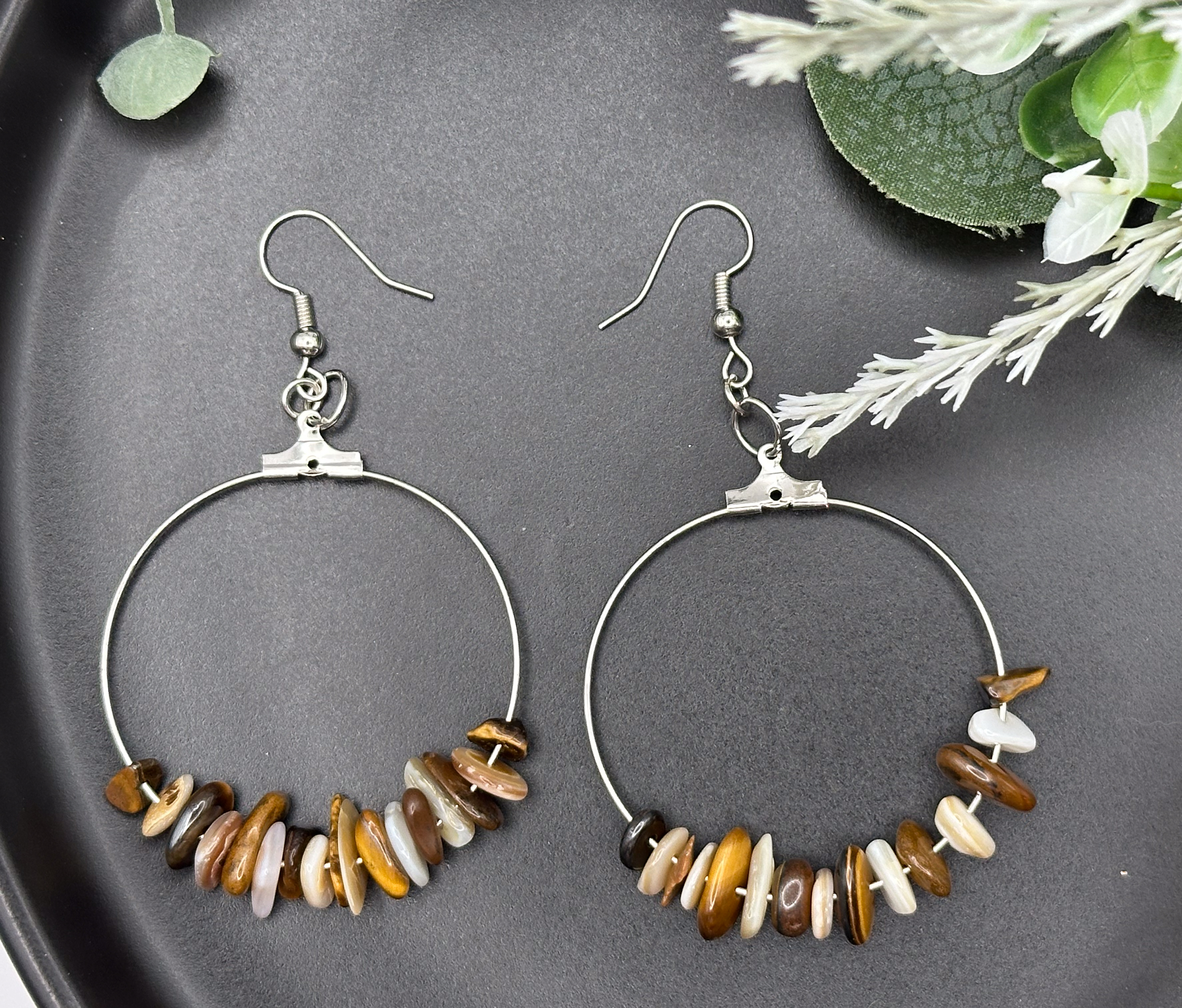 Add a touch of elegance to your look with these stunning Tigers Eye and white coral drop earrings! Each pair features natural gemstones that shimmer beautifully in the light, making them the perfect accessory for any occasion.